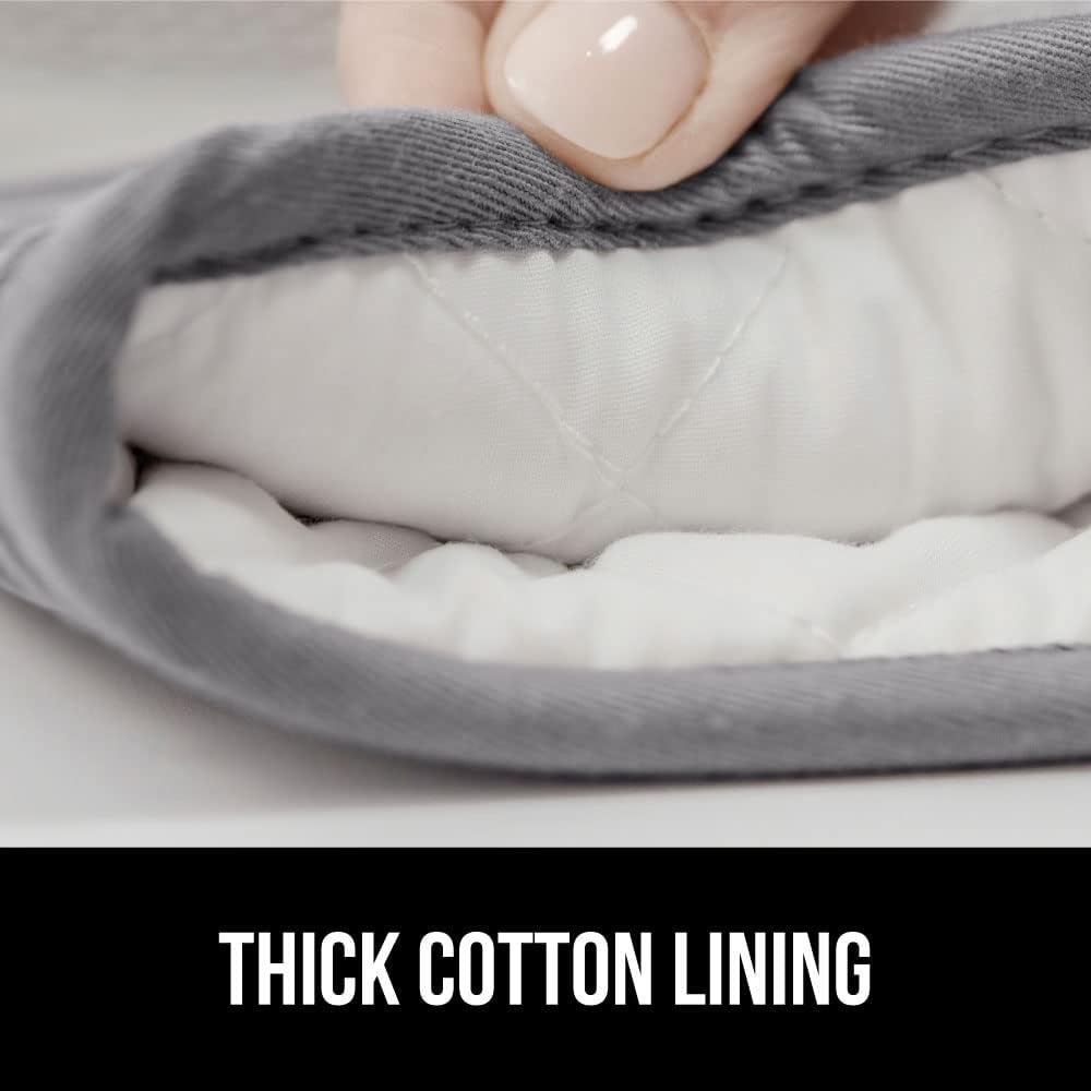 GORILLA GRIP BPA-Free Soft Silicone Oven Mitts, Heat Resistant and Waterproof Cooking Gloves, Thick Cotton Lining, Flexible Gripping for Baking Grilling, Kitchen Potholders Set of 2, 12.5x8.3, Gray