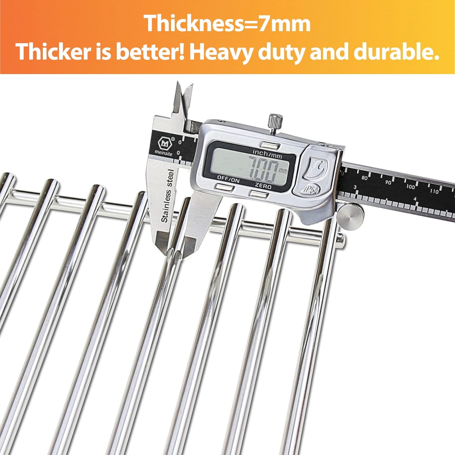 - [304 Non-Magnetic Stainless Steel] - Grill grates are Well Made, Distribute Heat Well. The diameter of a solid rod is 7mm, which is not as easy to crack, warp, or rust as other materials. Distribute Heat Well will leave a nice grill mark.