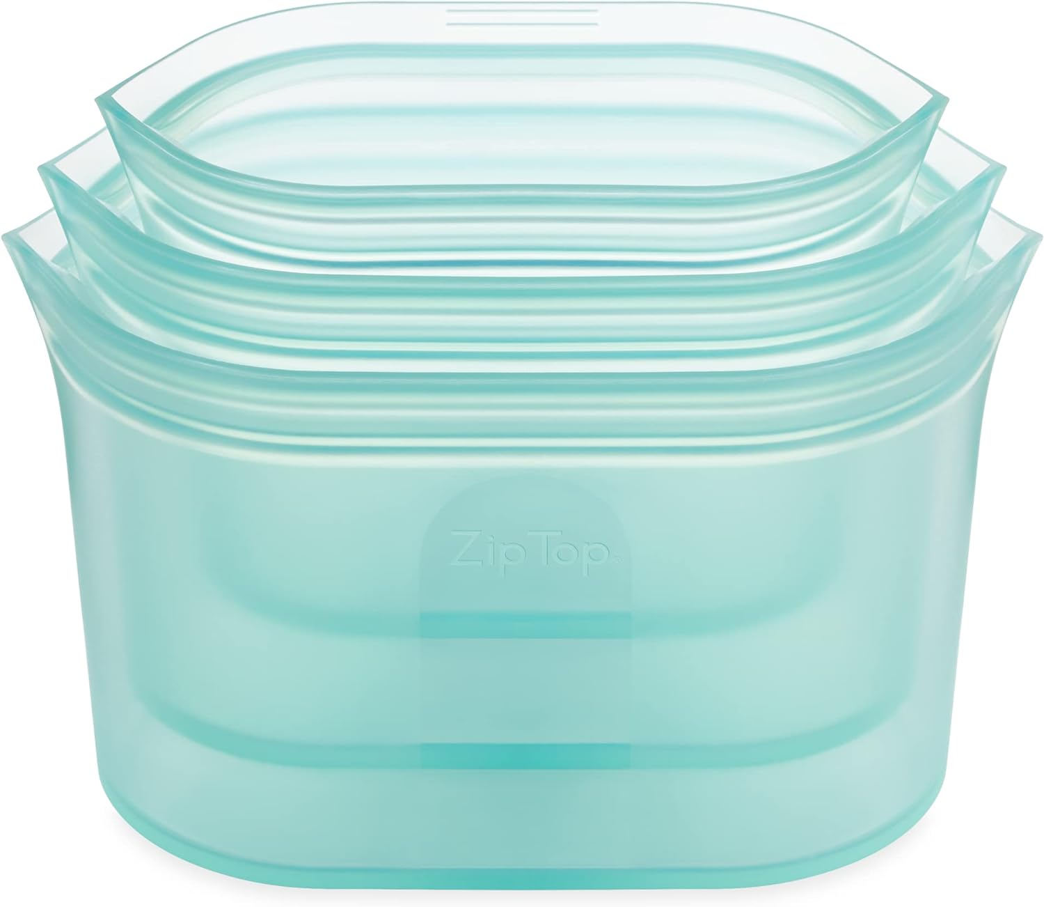 Zip Top Reusable Food Storage Bags | 3 Dish Set [Teal] | Silicone Meal Prep Container | Microwave, Dishwasher and Freezer Safe | Made in the USA