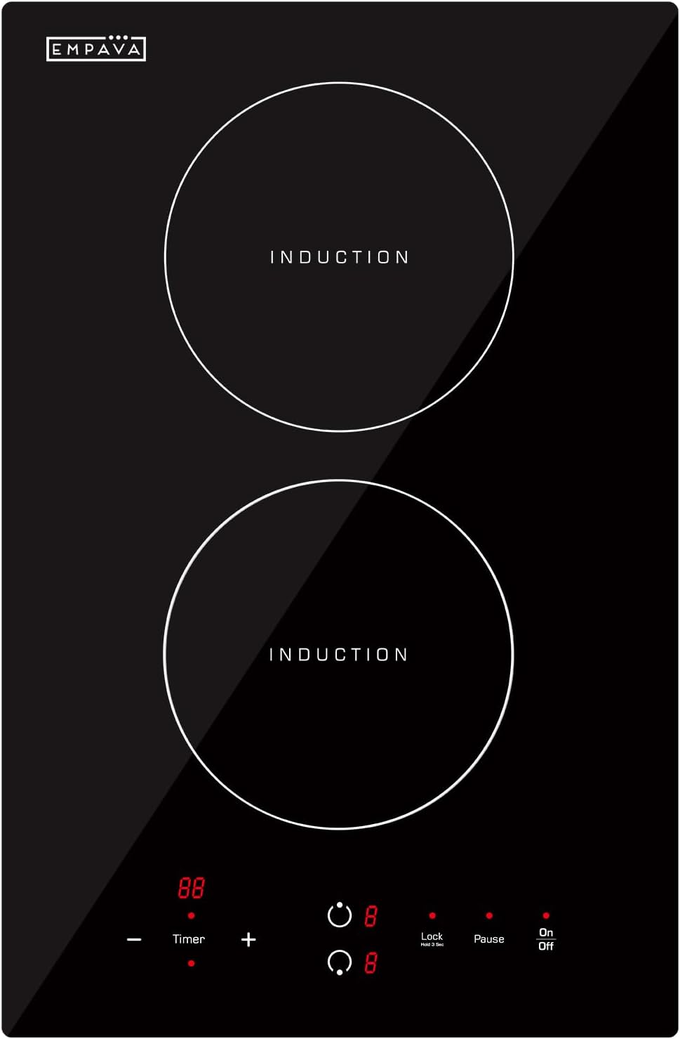 Empava Electric Stove Induction Cooktop Vertical with 2 Burners Vitro Ceramic Smooth Surface Glass in Black 120V, 12 Inch
