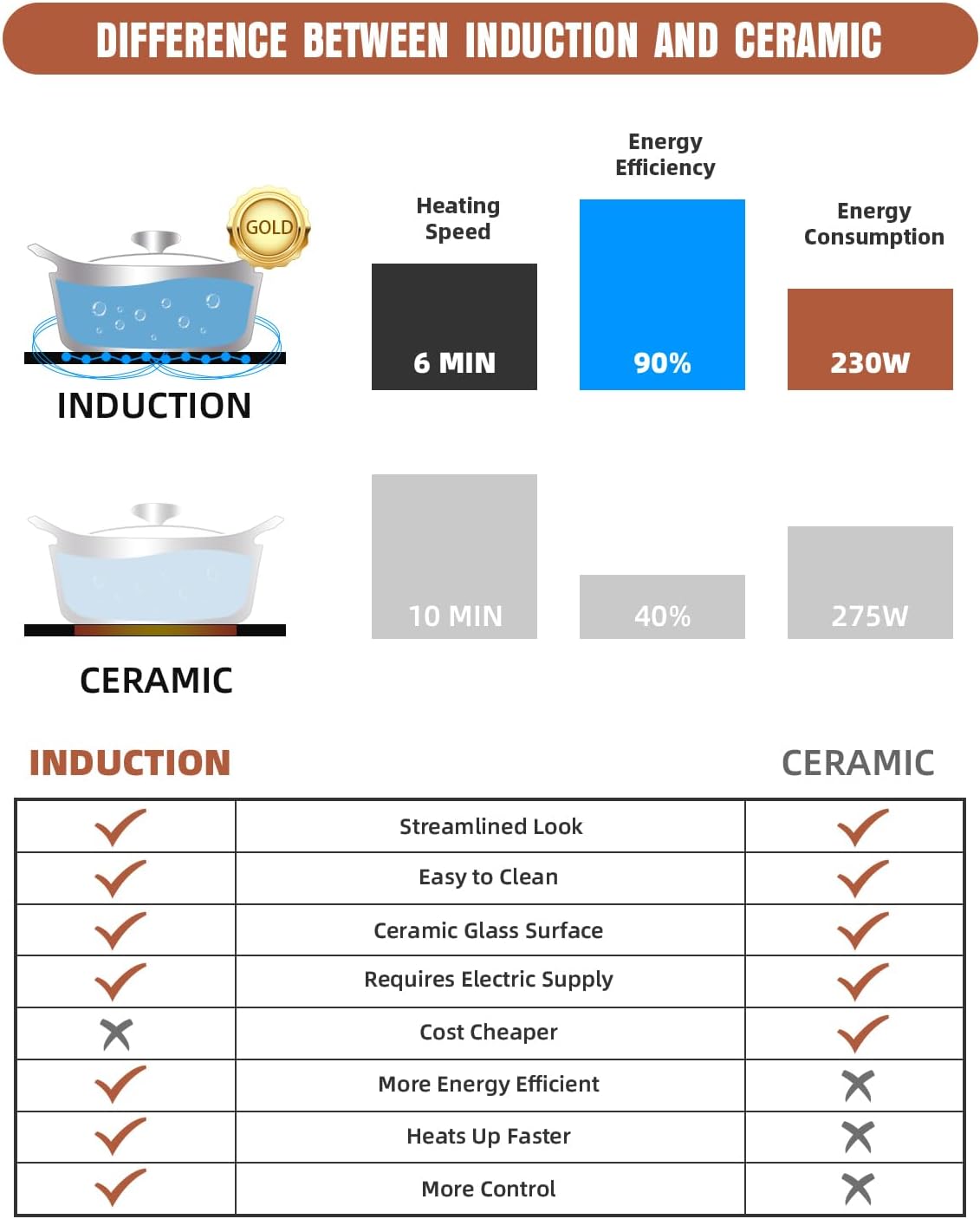 - Easy Clean-Up & Durable: Experience the flawless Empava smooth vitro ceramic glass surface that allows for effortless cleanup. Manufactured without releasing hazardous metals, it withstands intense heat without cracking or chipping. Only cookware with magnetic bottom will work properly on induction cooktop. To test the compatibility of your cookware, it can be judged by whether a magnet sticks to the bottom of your pots or not.