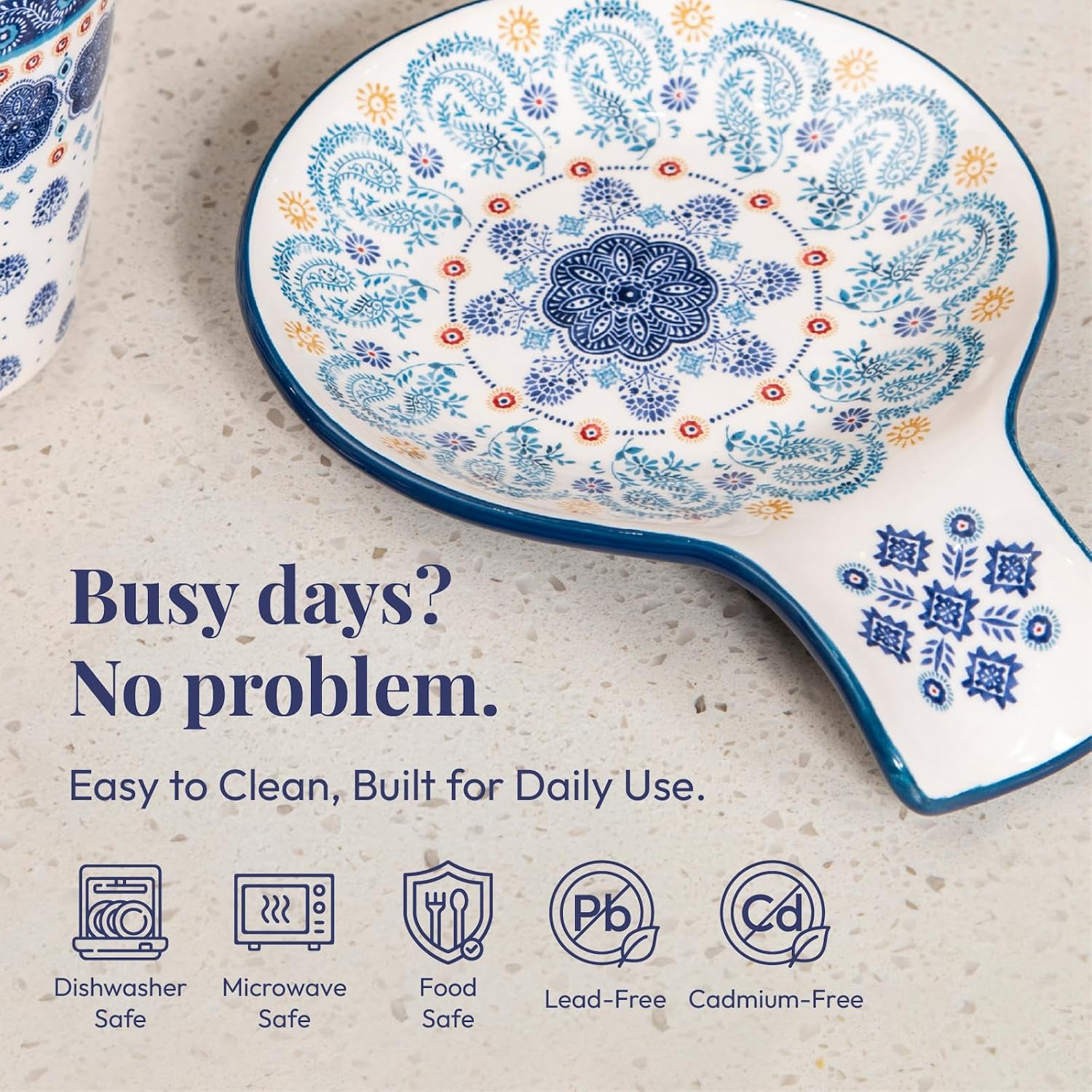 - 【Durable & Safe】Made of high quality ceramic that is lead and cadmium-free, this spatula rest is designed for everyday use. Its sturdy construction ensures long lasting durability, and its non-toxic material makes it safe for your entire family to use.