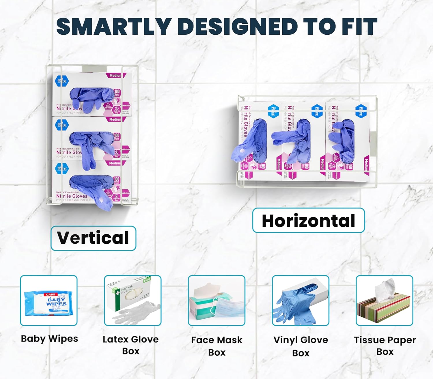 - Universal Fit: Designed to hold medium-sized glove boxes, available in both black and white to suit your decor.