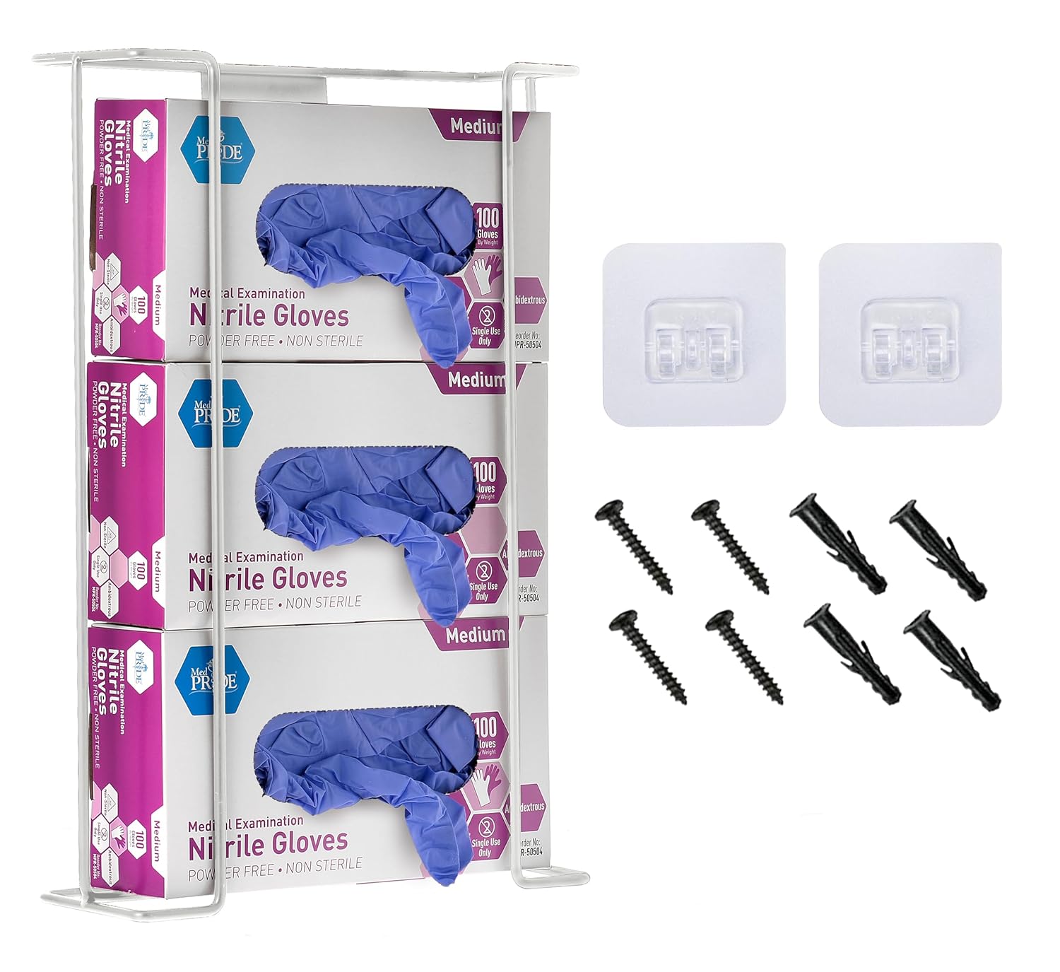 Alpine Glove Holder for Wall Mount - Latex Glove Holder Wire Glove Dispenser for Wall Disposable Glove Box & Tissue Box - Fits 3 Box (White)