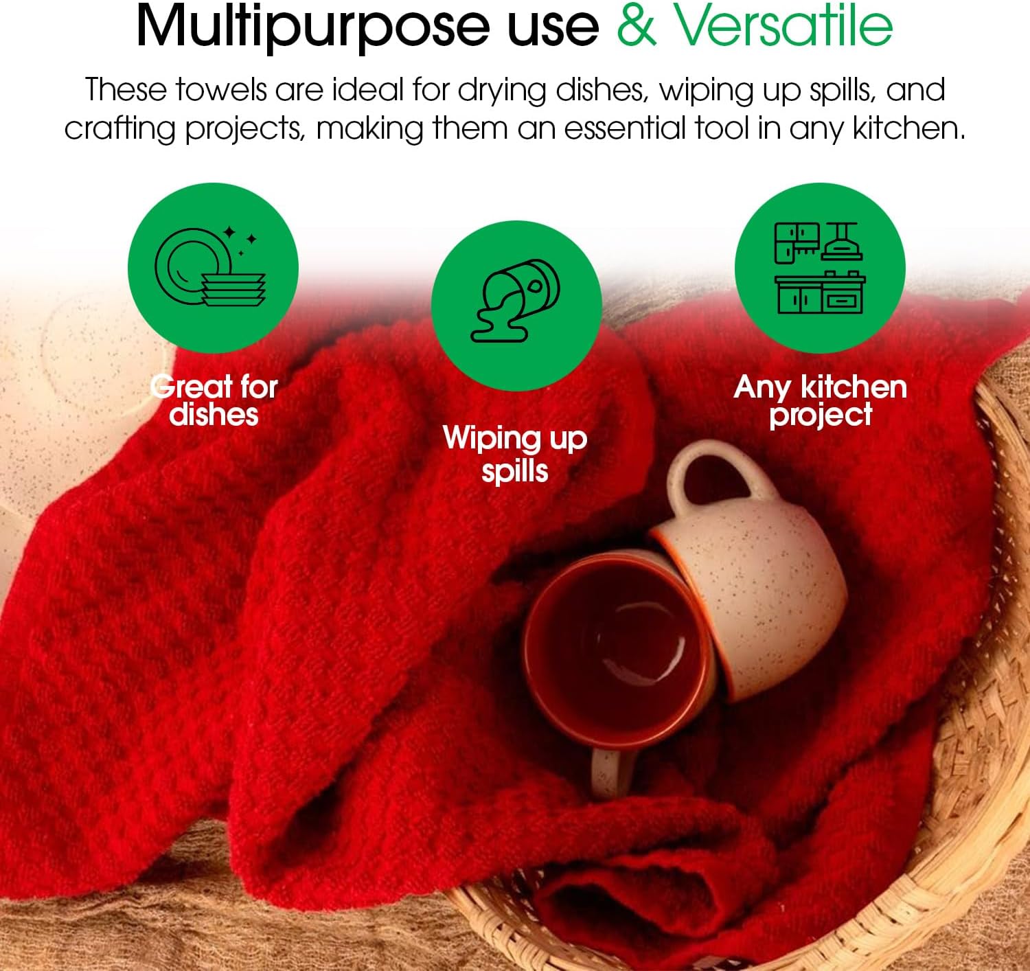 - HIGHLY ABSORBENT AND QUICK-DRY - Indulge in the benefits of highly absorbent, nonabrasive towels—essential kitchen accessories that quick-dry effortlessly after each use.