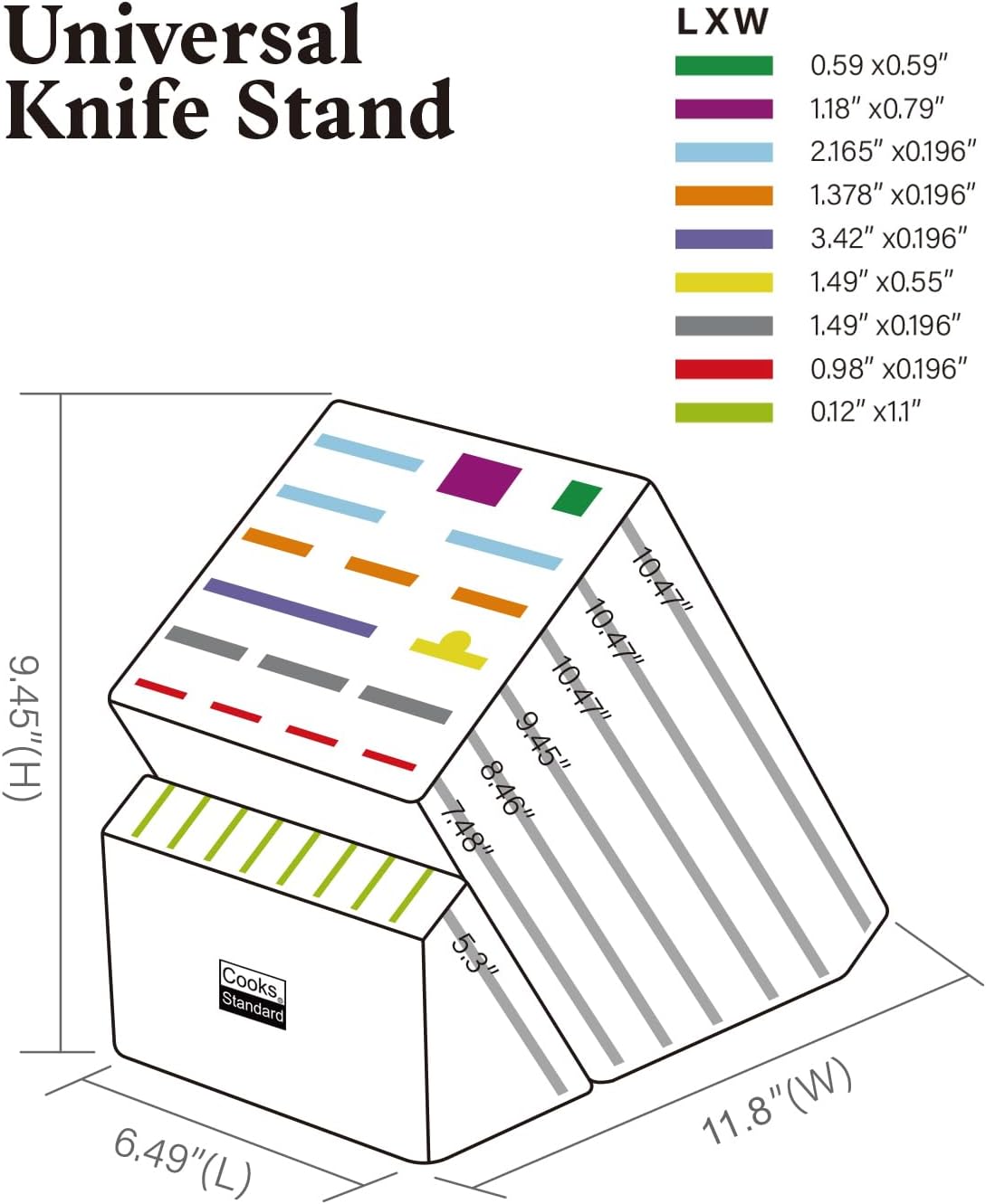 - Bamboo Knife Block: Made of natural bamboo with 25 Slots that is durable and looks great