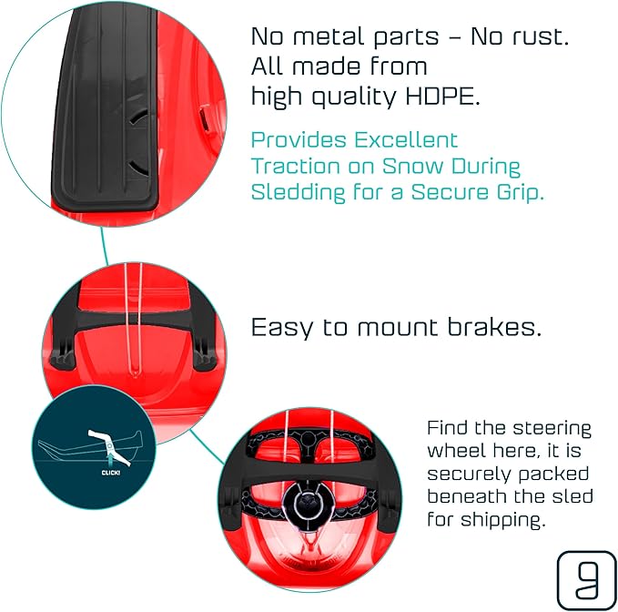 • SNOW SLED WITH BRAKES: A must-have for a safe and exhilarating sledding experience. The innovative design of the Stratos Snow Sled's brake system ensures that riders can easily stop, even on steep slopes