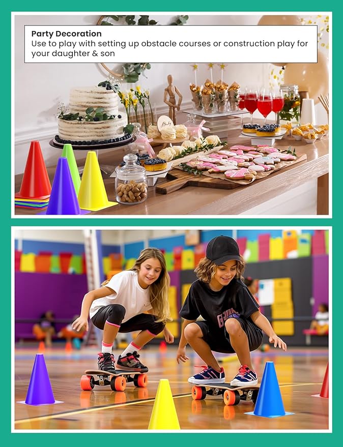 • Multipurpose Mini Traffic Cones : The football cones set are perfect for a variety of indoor and outdoor training and activities,such as soccer, basketball, rugby, baseball,games at theme parties and festivals,kid's games,roller skating, agility training, bicycle obstacle course, motorcycle training, dog training and more.Ideal choice for marking boundaries, setting up obstacles and decorations