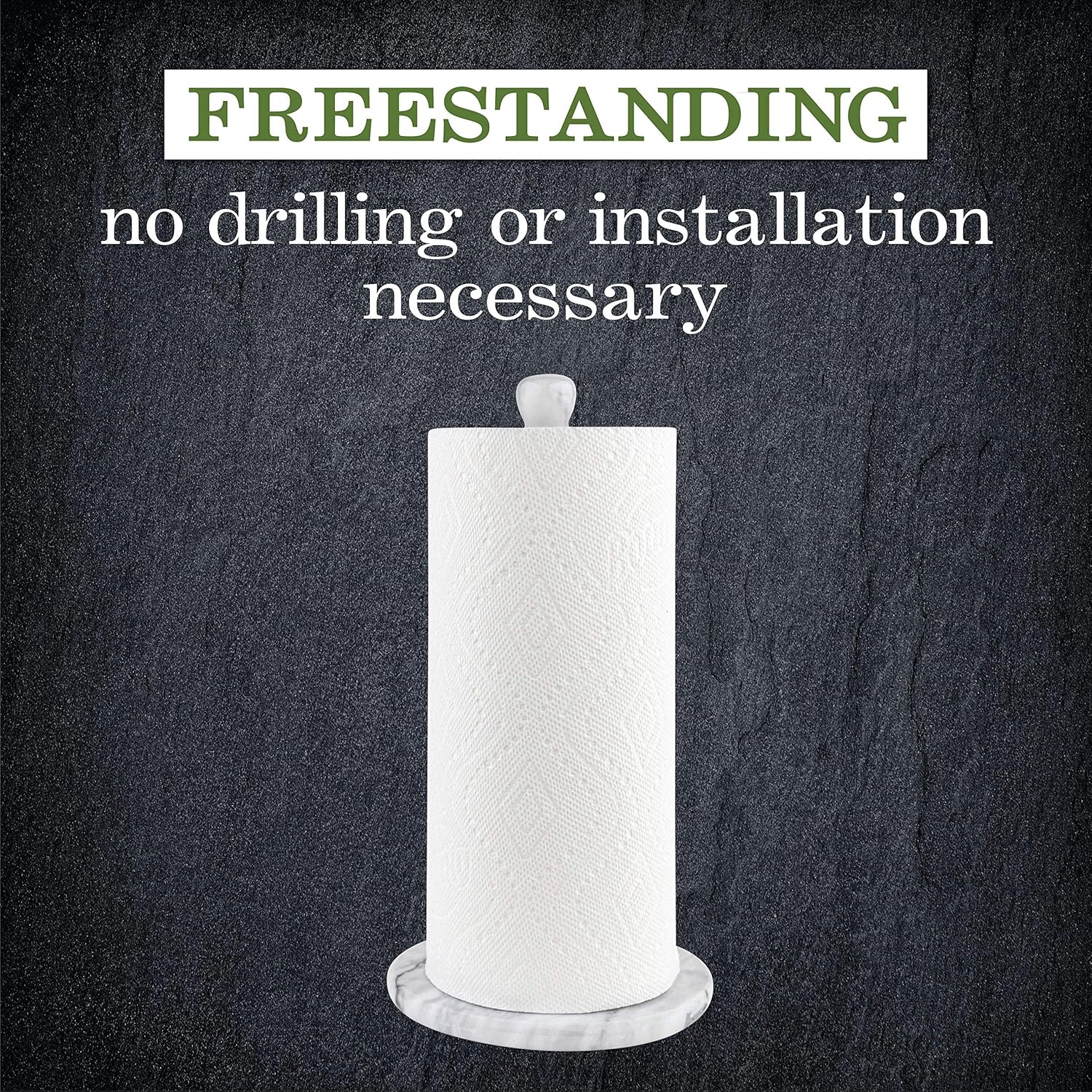 - MULTIPURPOSE- This heavy-duty paper towel holder can be used to keep kitchen rolls but can also be used as paper towel holder countertop, in the bathroom, in a cabinet, or even on your dining table! This elegant marble paper towel holder will never look out of place and always serve you well!
