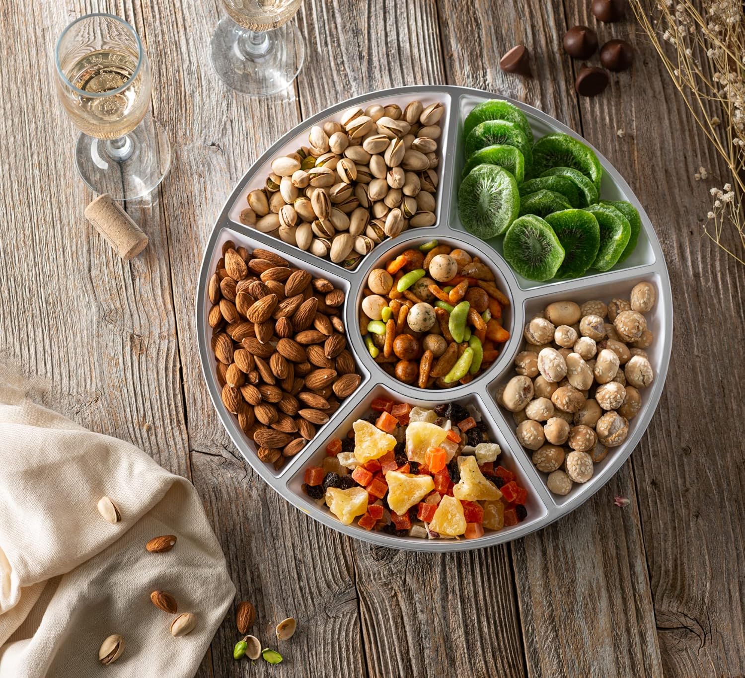 - USE: Plasticpro 6 Sectional Part Platter is Great for Use for Cut up Veggies, Nut Platter, Candy Platter, Veggy's & Sauce in the Center Weddings, Family gatherings, Holidays, Birthday Party's & for Every Event