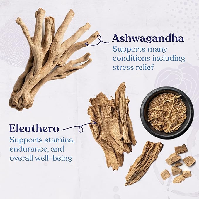 • THE AYURVEDIC ABILITY OF ASHWAGANDHA — We’re all more stressed out and “plugged in” than ever before. Organic Ashwagandha extract (Indian Ginseng) has been used for centuries in traditional medicine for its stress reducing, adaptogenic benefits, claims that have been backed up in scientific research. We’ve combined this extract with organic Eleuthero root extract (Siberian Ginseng), and Holy Basil extract (Tulsi) to create this mind-calming, body-balancing, delicious medium roast coffee.