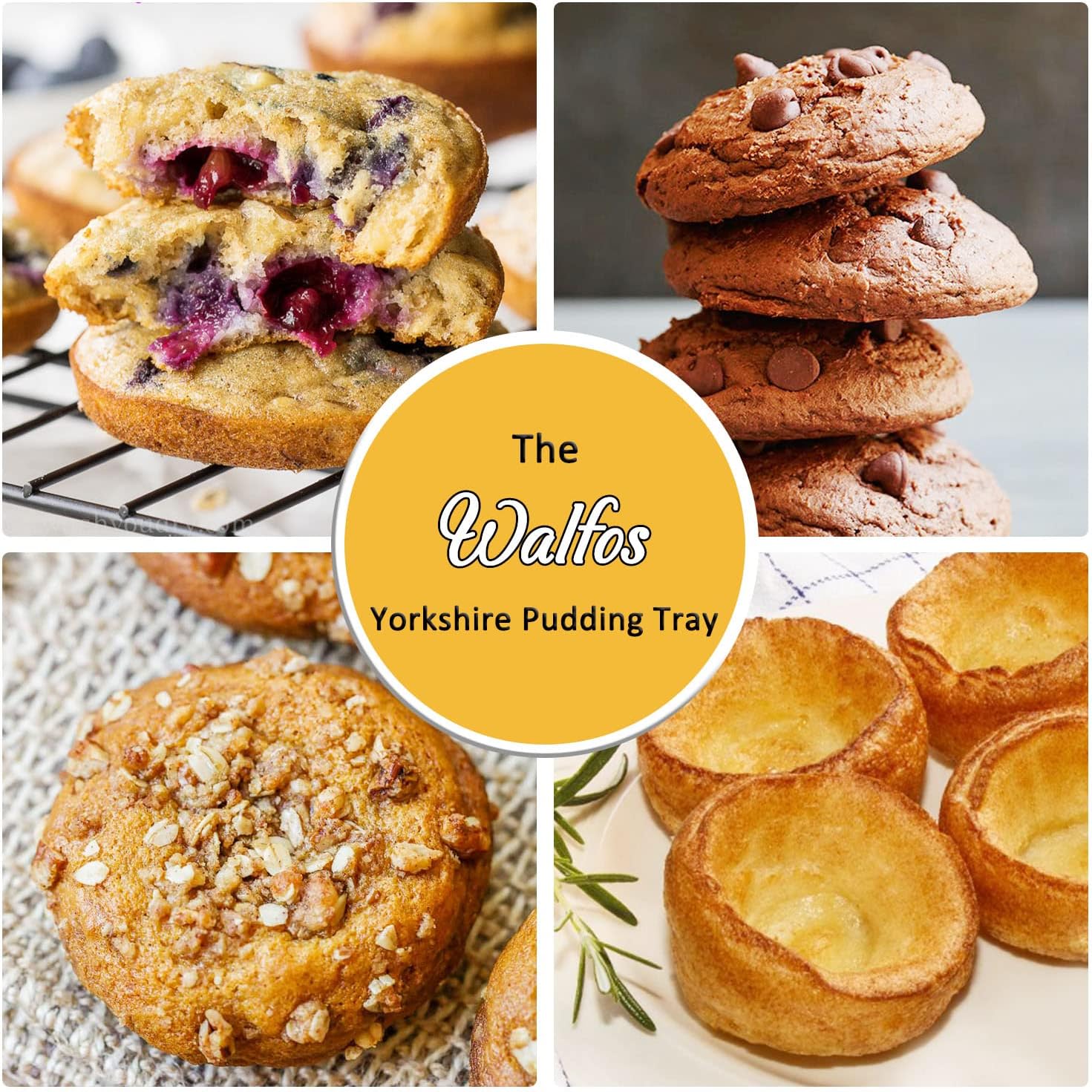 - NON-STICK, FLEXIBLE Silicone ! JUST POPS OUT! Without the Use of Extra Butter or Flour.WITHOUT Chemical Coating.Unlike aluminum pan, WALFOS brand silicone jumbo muffin top pan don't need coating to keep NON-STICK, more healthy.NO MORE METAL RUSTING!!