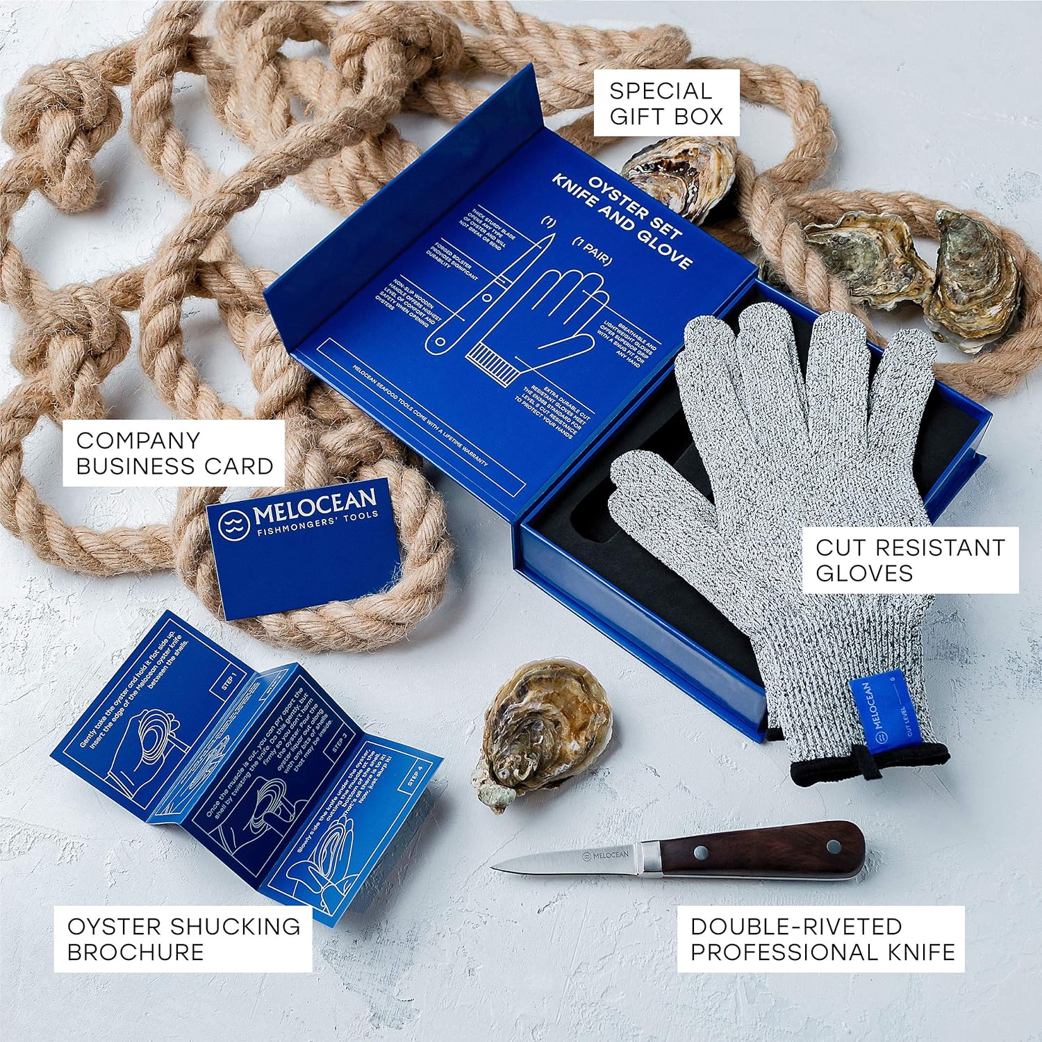 Oyster Shucking Knife and Gloves Set - Premium Oyster Knife and Oyster Shucking Glove Kit - Professional Oyster Shucker Clam Knife Oyster Opener Tool in Lovely Box - Bonus Ebook and Brochure Included