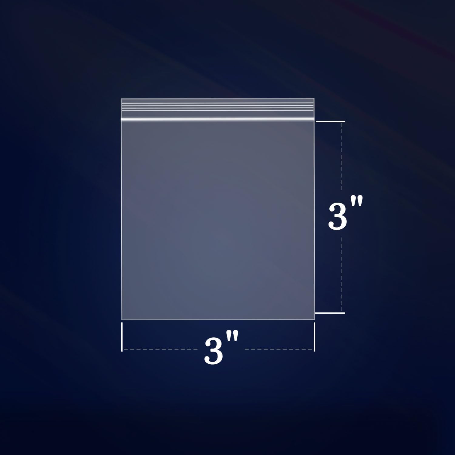 - [Specifications] -1000 Count 3" x 3" Usable Dimension (excludes the zipper), 2.0 Mil Thickness Reclosable Zip Poly Bags.We have various sizes for you to choose from.