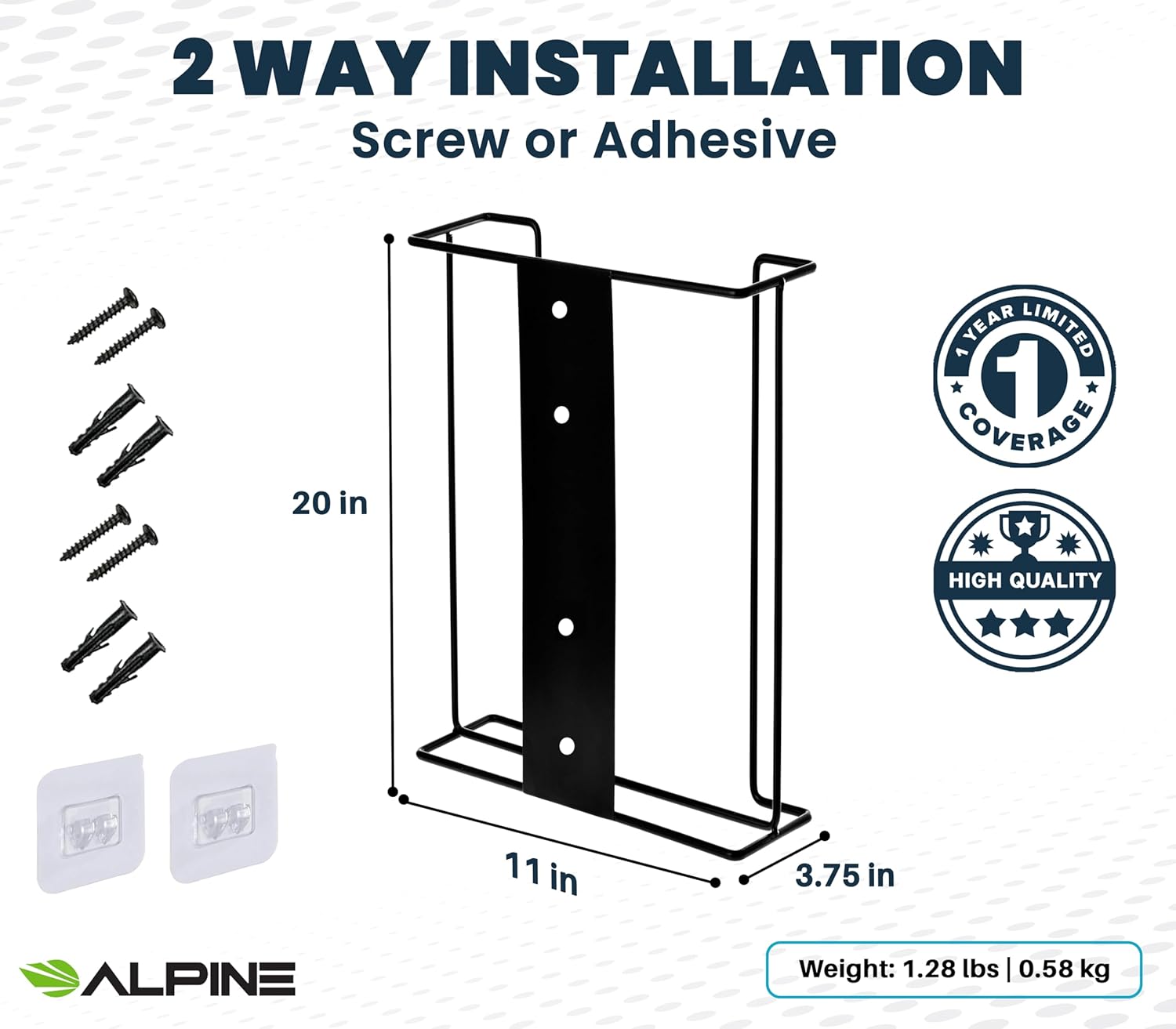 Alpine Glove Holder for Wall Mount Latex Gloves - Wire Box Dispenser for Disposable Gloves, Tissues, Masks, Wipes & More - Fits 4 Boxes (Black)
