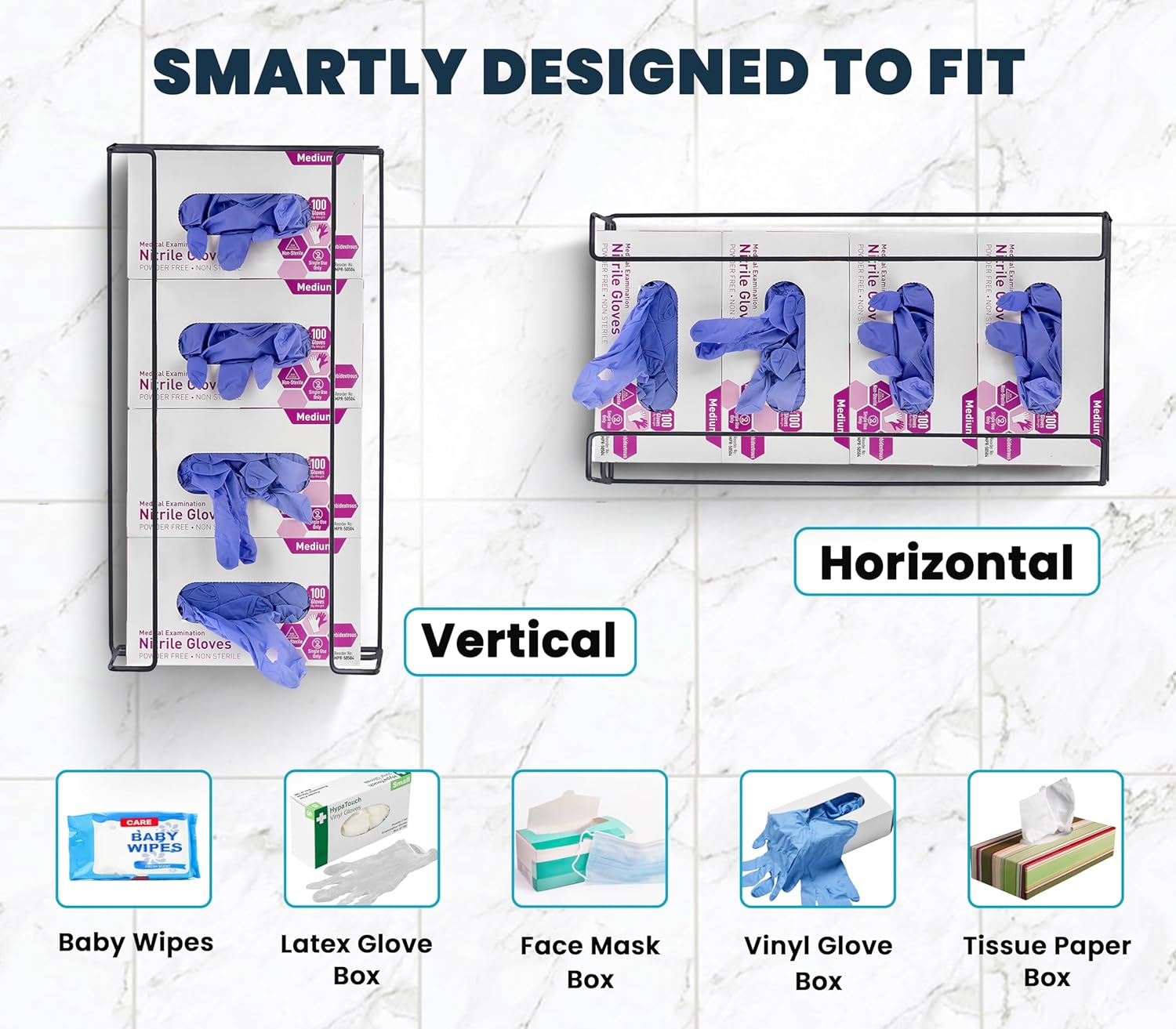 - Universal Fit: Designed to hold medium-sized glove boxes, available in both black and white to suit your decor.
