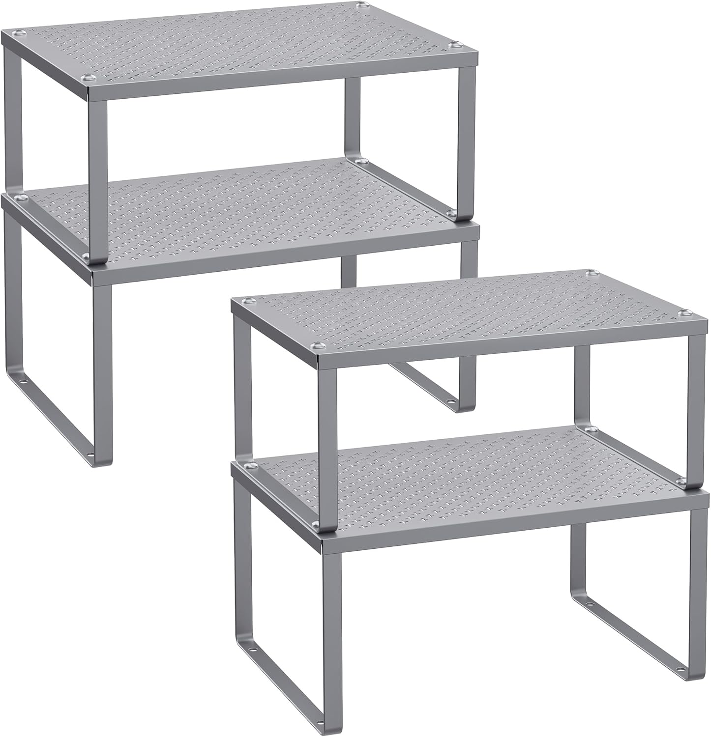 SONGMICS Spice Racks, Set of 4 Metal Cabinet Shelf Organizers, Countertop Organizers, Shelf Risers, Stackable, Expandable, Silver UKCS006S01