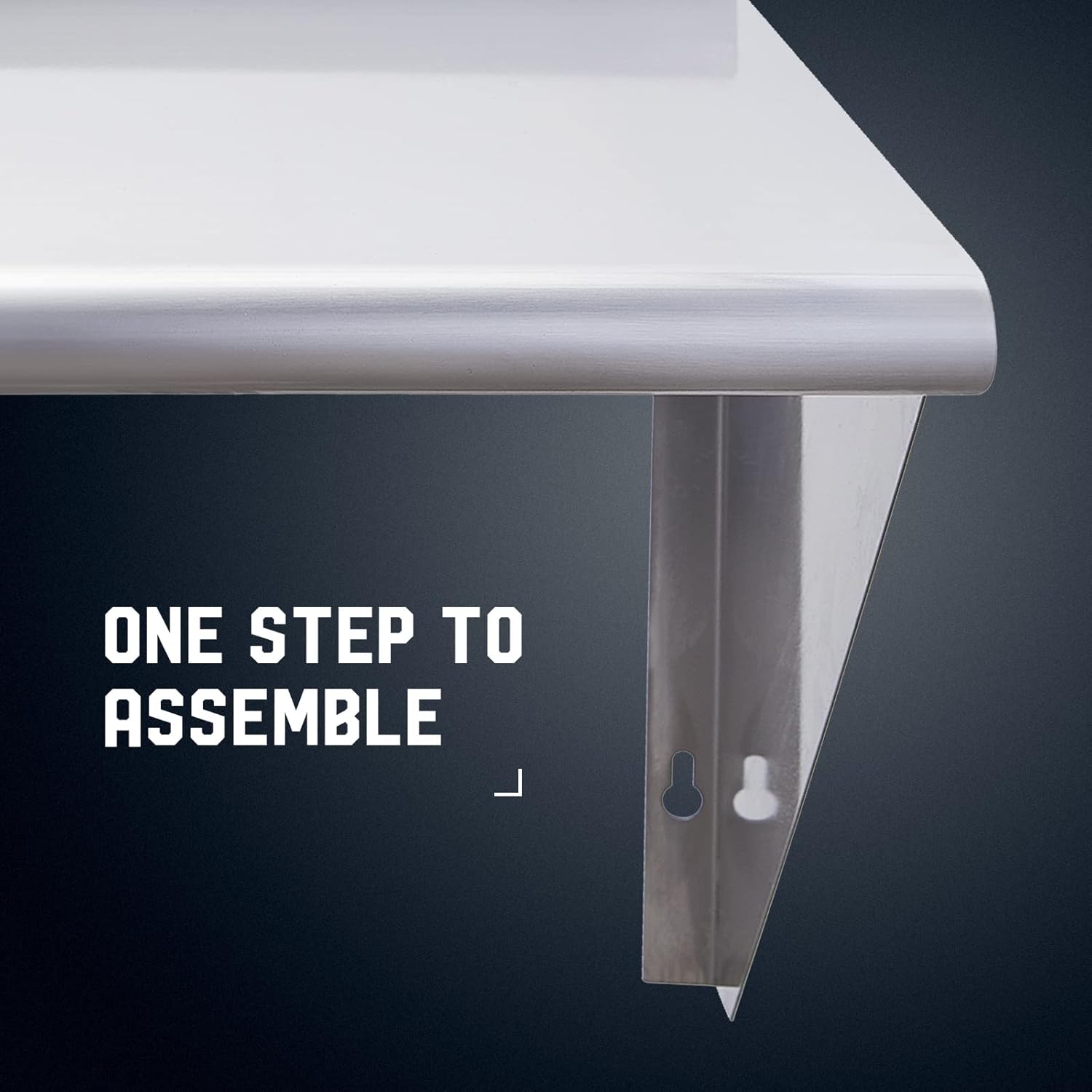 - Stability & Reliability: Triangular support structure and heavy stainless steel plate material are adopted to ensure that the shelf can be firmly held in place. In addition, the rounded corner design is more humanized, the surface is smooth, preventing you from being cut, and providing a safe work or family space