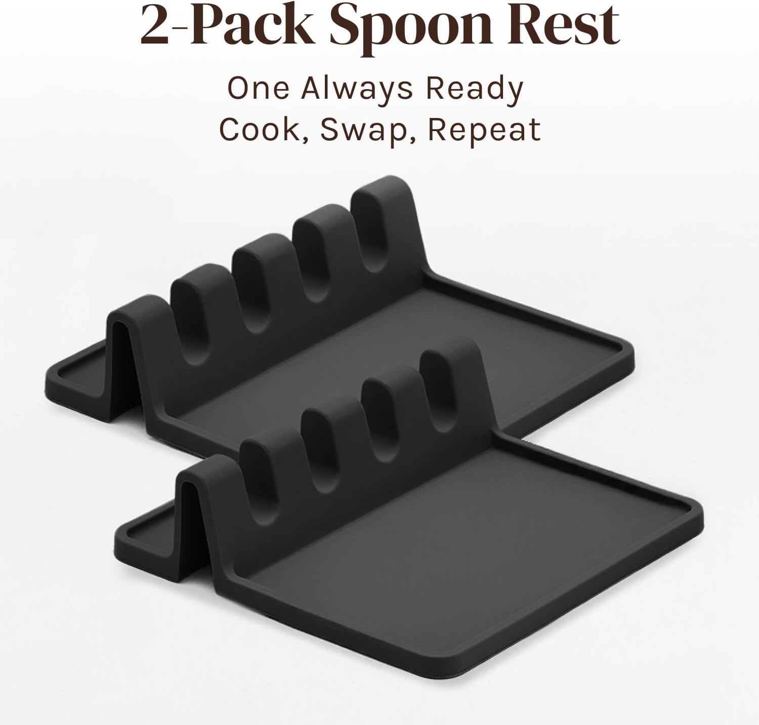 Black Silicone Spoon Rest for Stove Top with Drip Pad (Two Pack) - Heat-Resistant, BPA-Free Utensil Rest & Spoon Holder for Kitchen Counter - Grill Utensil Holder for Spatulas, Tongs, Ladles