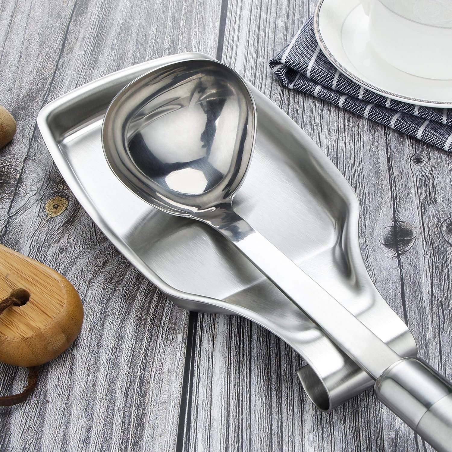 MSY BIGSUNNY Spoon Rest for Stove Top, 304 Stainless Steel Cooking Utensils Spatula Rest for Kitchen Counter, 2 Pack