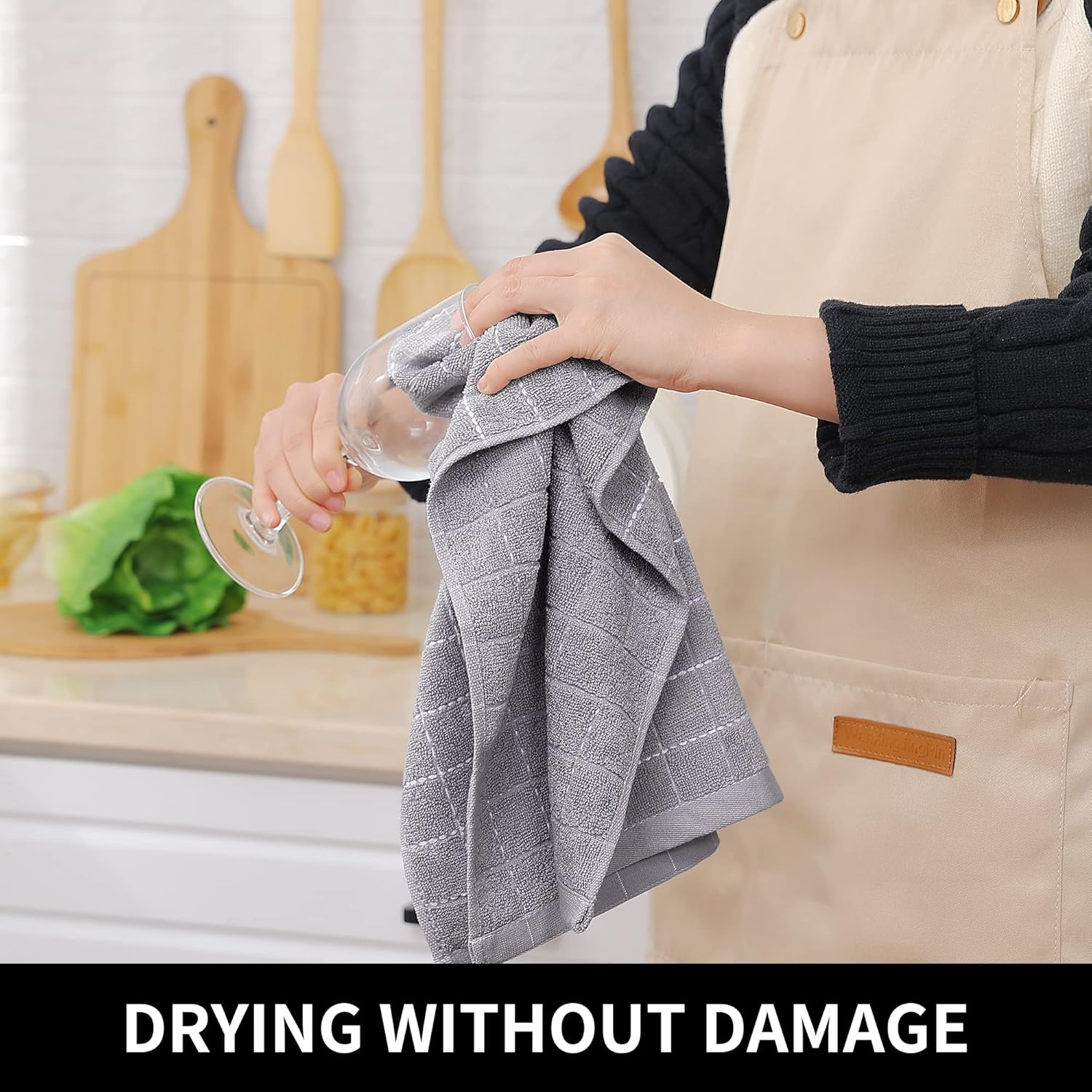 Homaxy 100% Cotton Terry Kitchen Towels(Light Grey, 13 x 28 Inches), Checkered Designed, Soft and Super Absorbent Dish Towels, 4 Pack