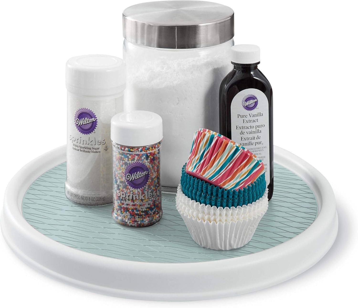 - RIMMED EDGE: The outer rim prevents items from falling off, non-skid surface keeps items in place while rotating. Durable, easy-to-clean polypropylene with non-skid beaded surfaces.