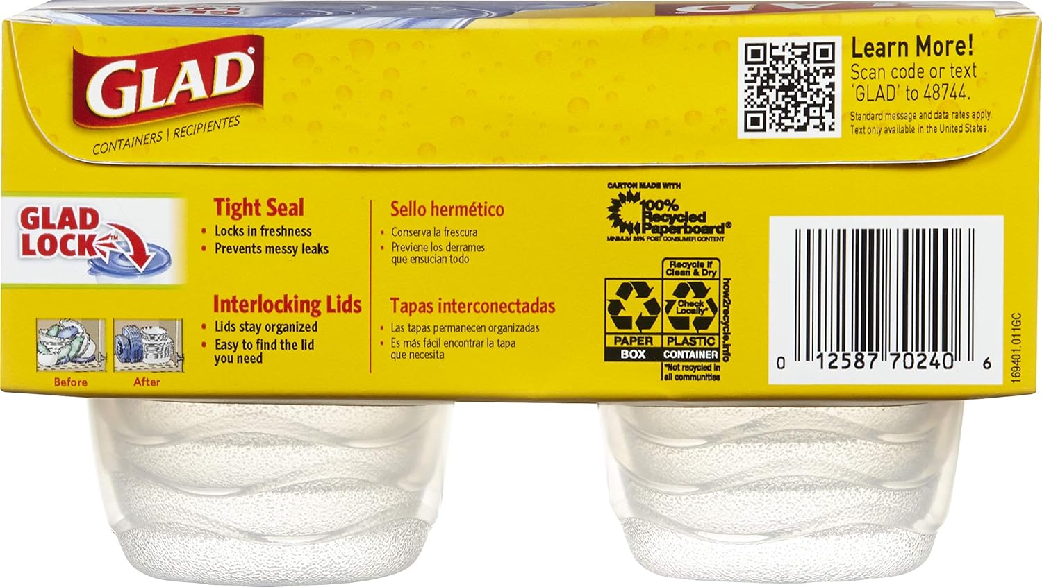 Glad GladWare Mini Round Food Storage Containers - Small Meal Container Holds up to 4 Ounces of Food - Lock Tight Seal, 8 Count - 12 Pack