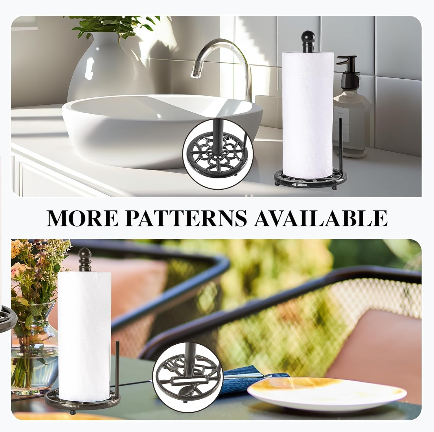 - Decorative & Practical: Vintage paper towel holder will be charming in your kitchen countertop as home decor. The compact design takes up minimal space while still providing room to store one roll of paper towels; Fits both standard and large jumbo rolls of disposable paper towels