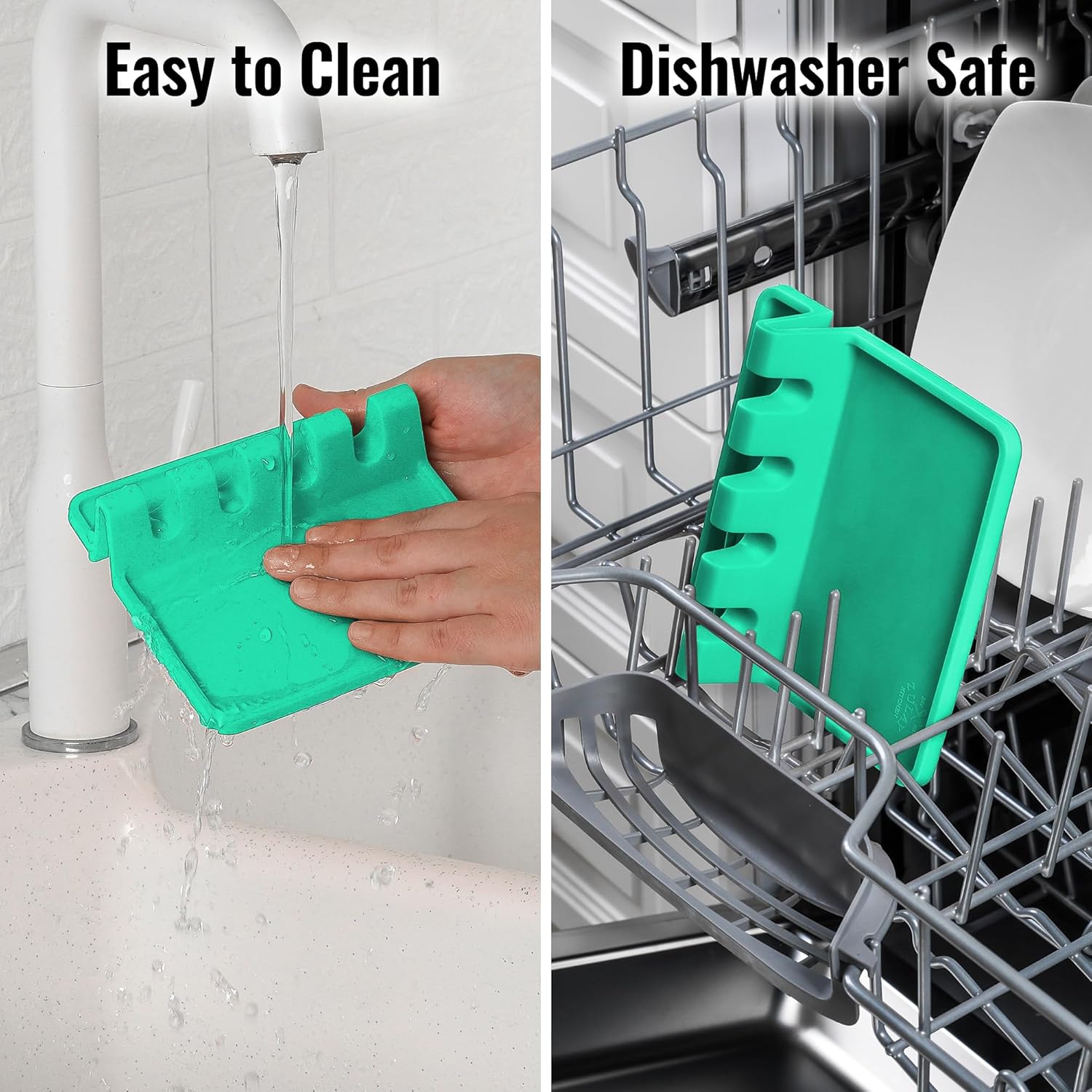 - HEAT RESISTANT AND EASY TO CLEAN: Made from food-grade material, this silicone spoon rest can be placed near the stove or countertop without it being affected by heat. It is designed with a non-slip base to prevent it from sliding and causing chaos while cooking. Once you are done with cooking, toss the kitchen tool holder in the dishwasher for a quick cleanup.