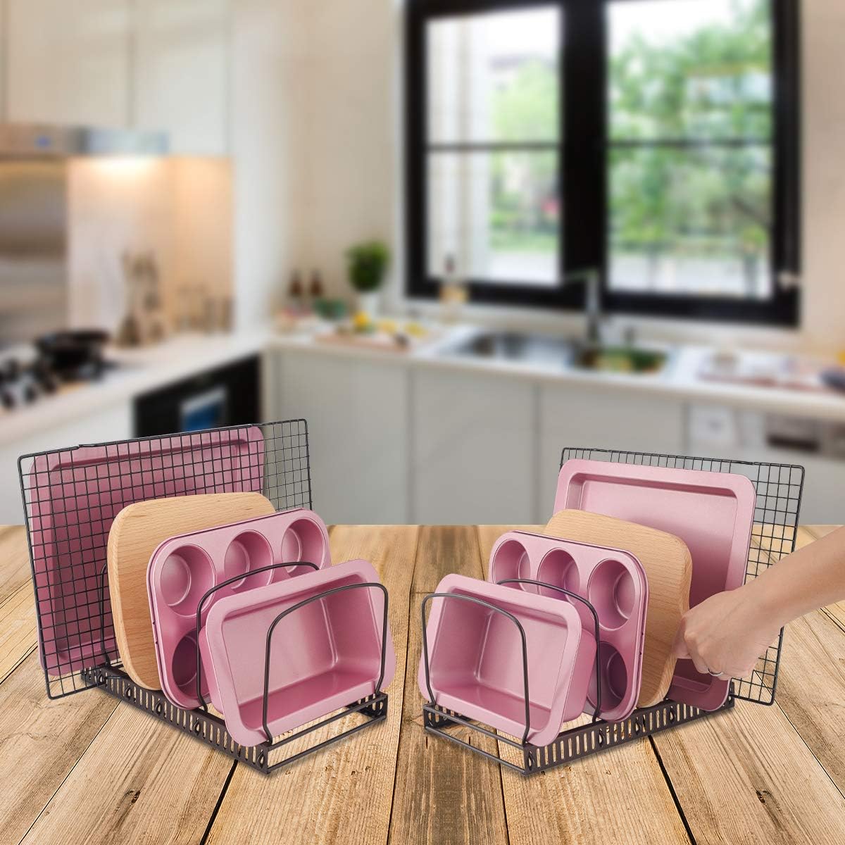 - 【Multifunction】Made of coated heavy metal, structurally very strong. Perfect for organizing cutting boards, bakeware, plates, cooling racks, pot and pan lids, serving trays, and reusable containers