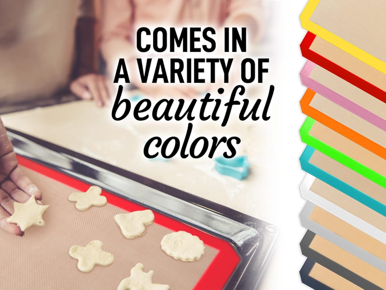 - MUST-HAVE BAKING ESSENTIAL: Revolutionize baking with these silicone baking mats. This set of 2 mats is great for baking cookies, bread, candy, biscuits, and other baked goods without any plastic aftertaste.
