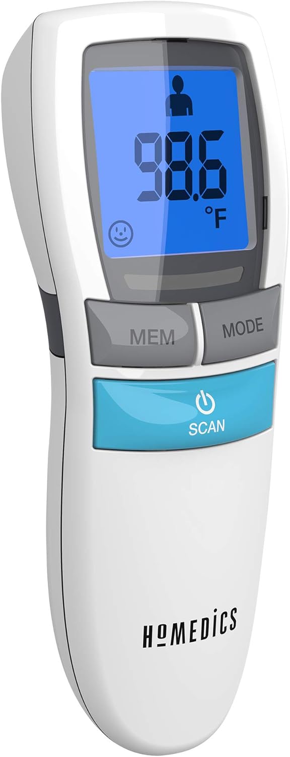 HoMedics No-Touch Infrared Thermometer, Reliable and Accurate Body Temperature Readings, Ultra-Fast Results, Digital Display for Fahrenheit or Celsius, Quiet Nighttime Mode and High-Fever Alarm
