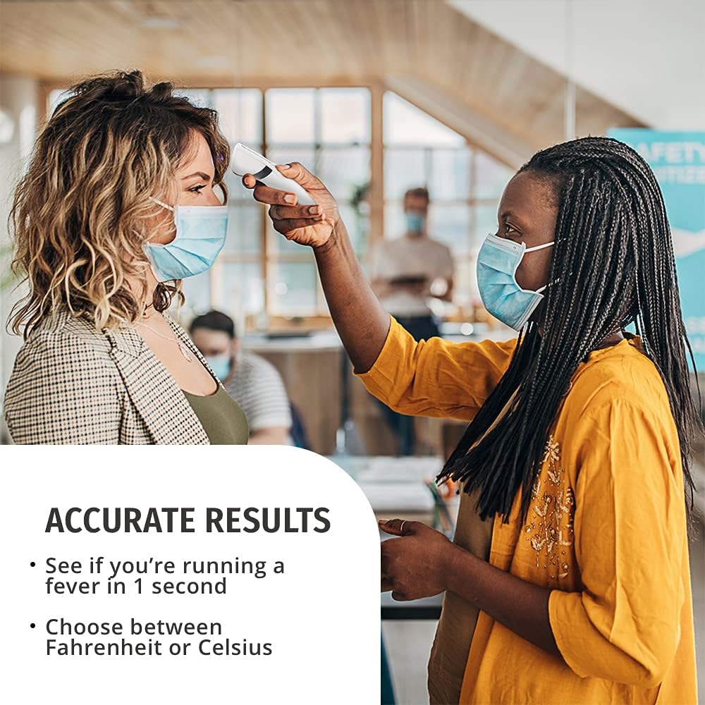 - Contact Free: Zero-contact infrared technology provides reliable and accurate temperature readings in just 1 second; just point at forehead for results; stores up to 30 results