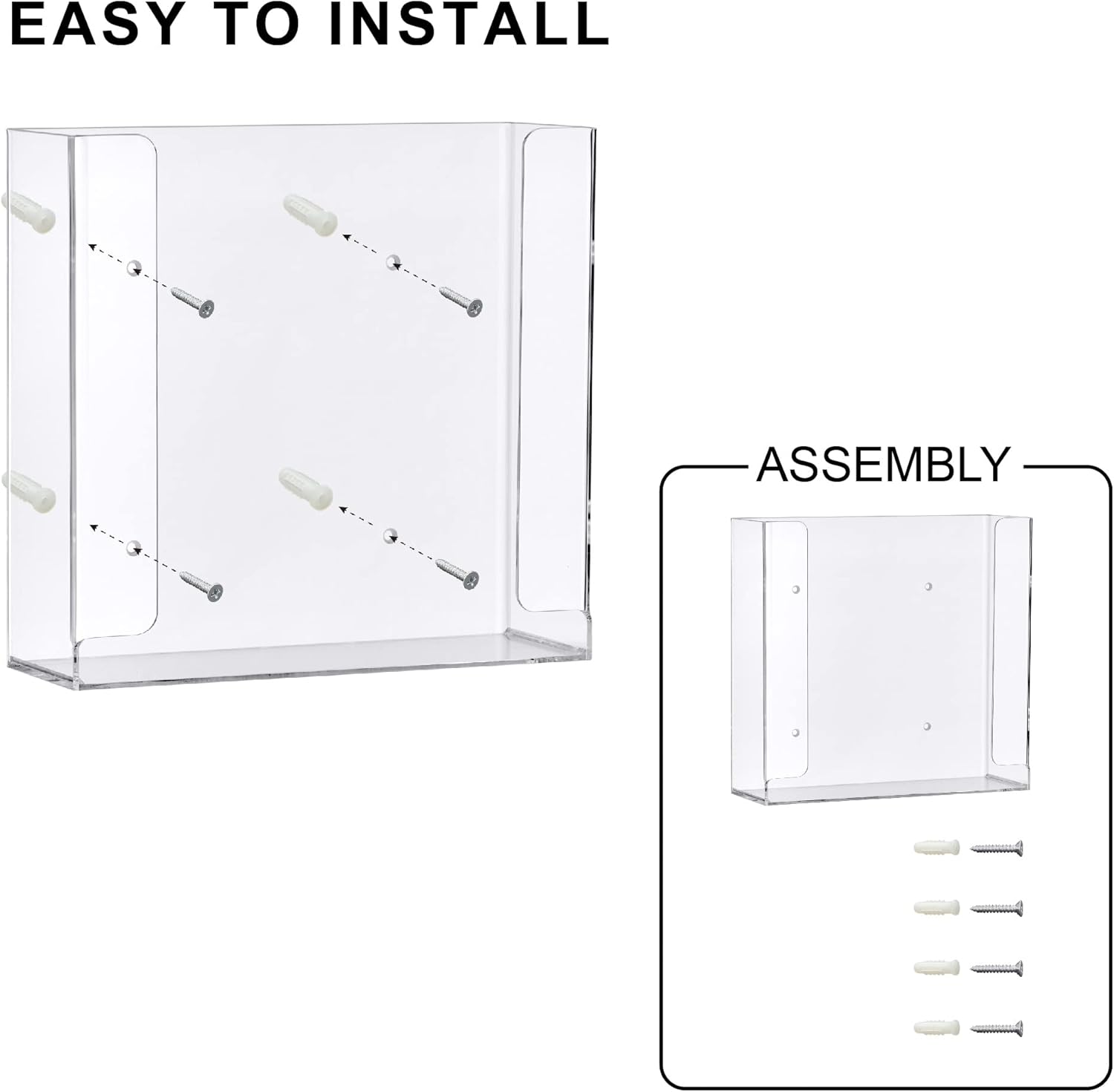 Amazing Abby Acrylic Glove Box Holder, Wall-Mounted Glove Dispenser, Floating Glove Box Organizer, Medium Size (for 2 Boxes), 10.5" W x 10.0" H x 3.5" D (Mounting Hardware Included)