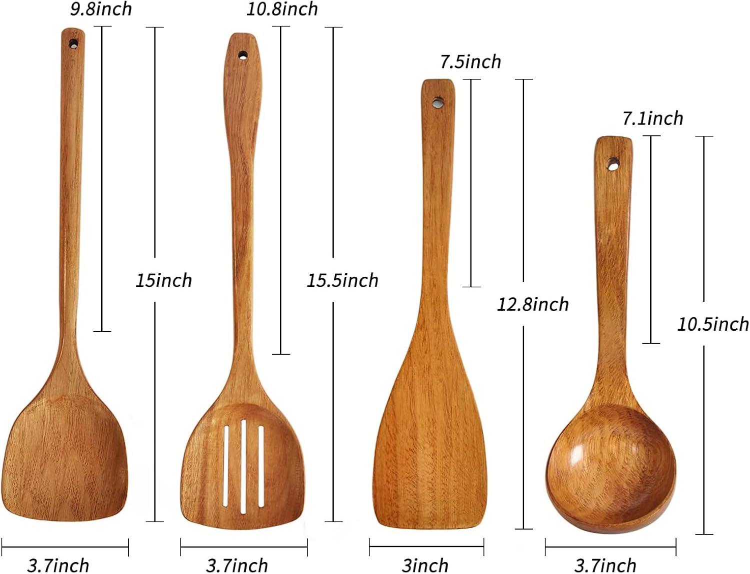 Wooden Spatula,Slotted Turner,Soup Ladle,Long Handle Utensils Set,Handmade for Kitchen Cookware (Wooden Utensil 4 Sets)