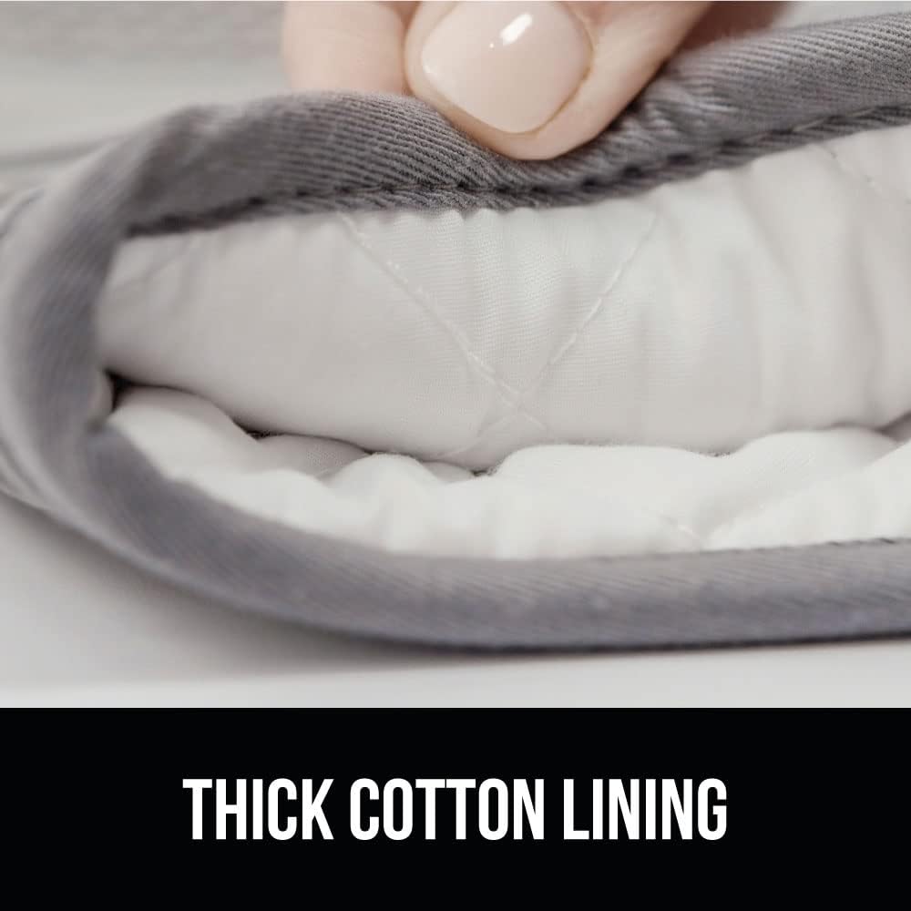 GORILLA GRIP BPA-Free Soft Silicone Oven Mitts and Pot Holders Sets of 4, Heat Resistant Waterproof Cooking Gloves, Thick Cotton Lining, Flexible Gripping for Baking Grilling, Kitchen Trivets, Gray