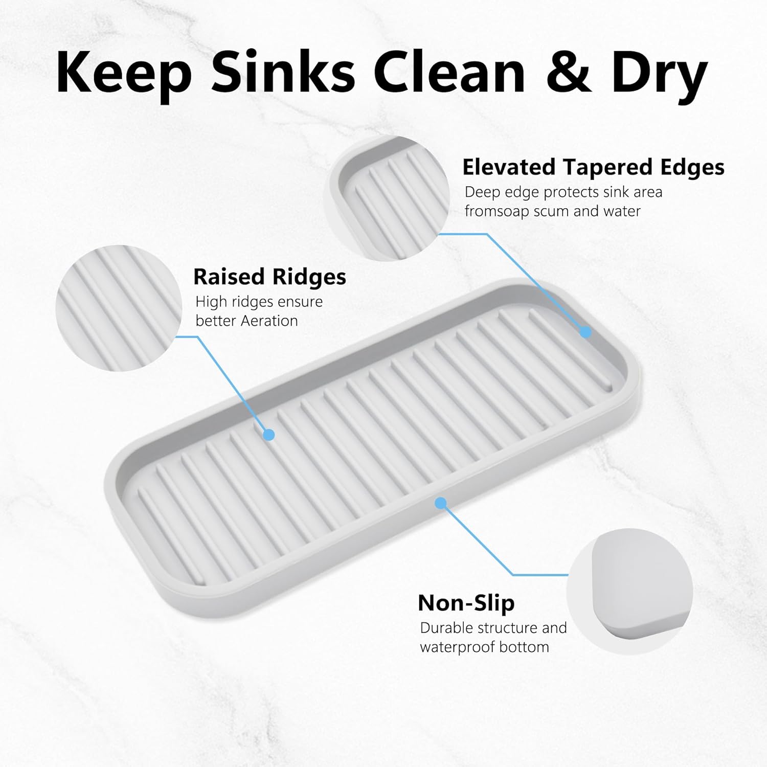 - Quick Dry - The sink caddy sponge holder designed with the raised ridges. Allows air to flow and water to evaporate quickly. The raised outer edge prevent water spill out to your counter. Your scrubbers, bar soap, steel wool and sponges will dry quickly.