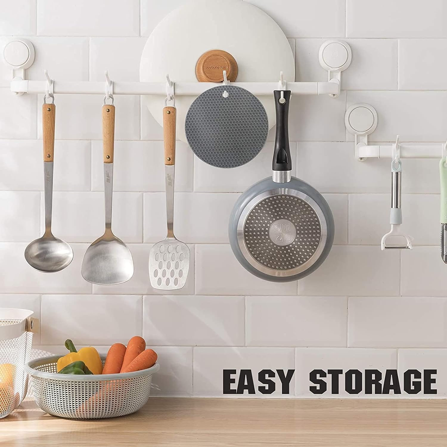 - MULTI-PURPOSE KITCHEN TOOLS - Each trivet has a corner hole for convenient hanging storage and can be used as a coaster, drying mat, jar opener gripper pad, spoon holder, garlic peeler, and potholder mat.