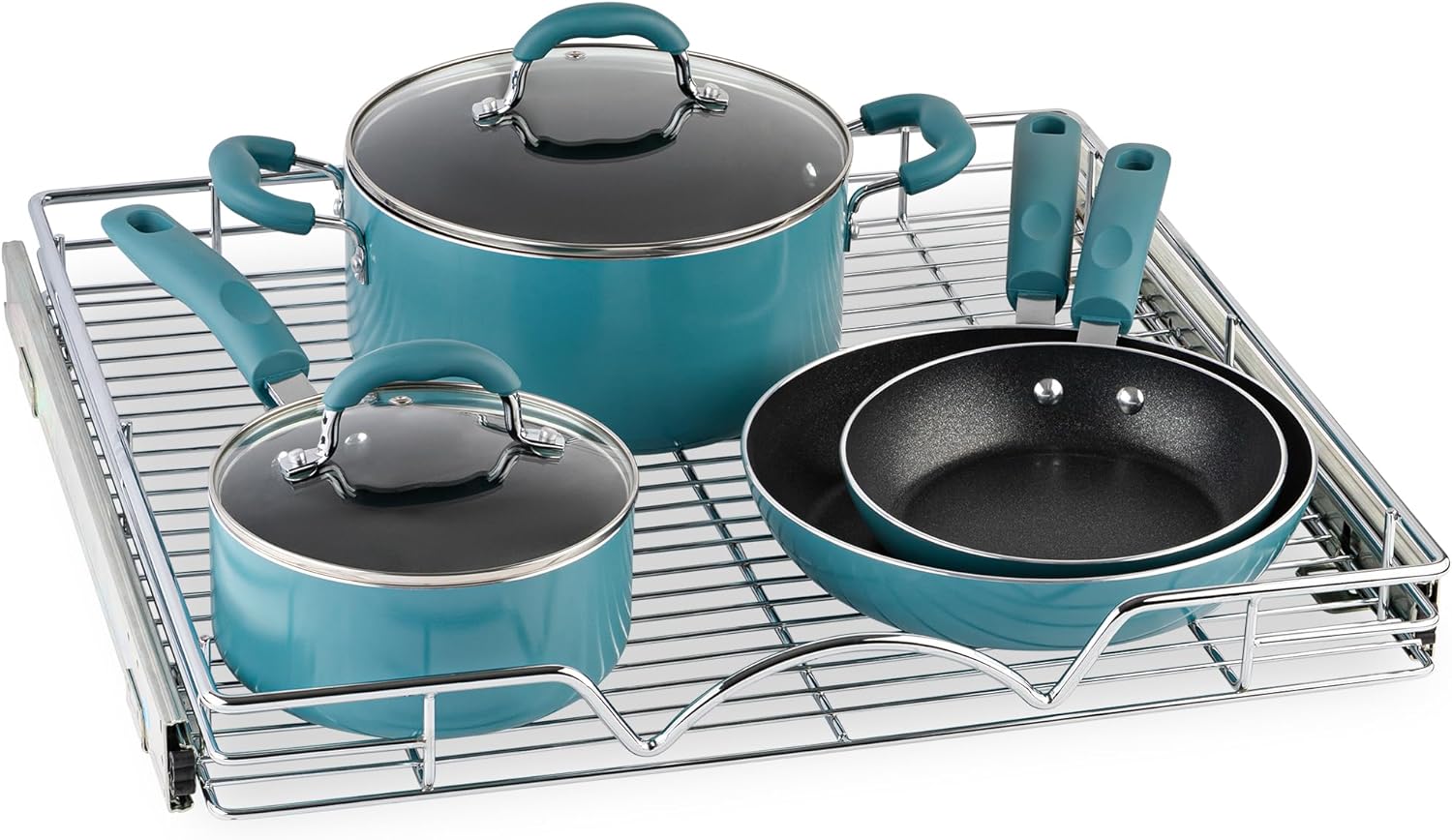- SMOOTH SLIDE-OUT DRAWER: This kitchen cabinet roll out shelf is manufactured with a pull out system that slides out ultra-smooth. Other than other drawer organizers, our Pull Out Cabinet shelf slides out all the way, providing you with easy access.