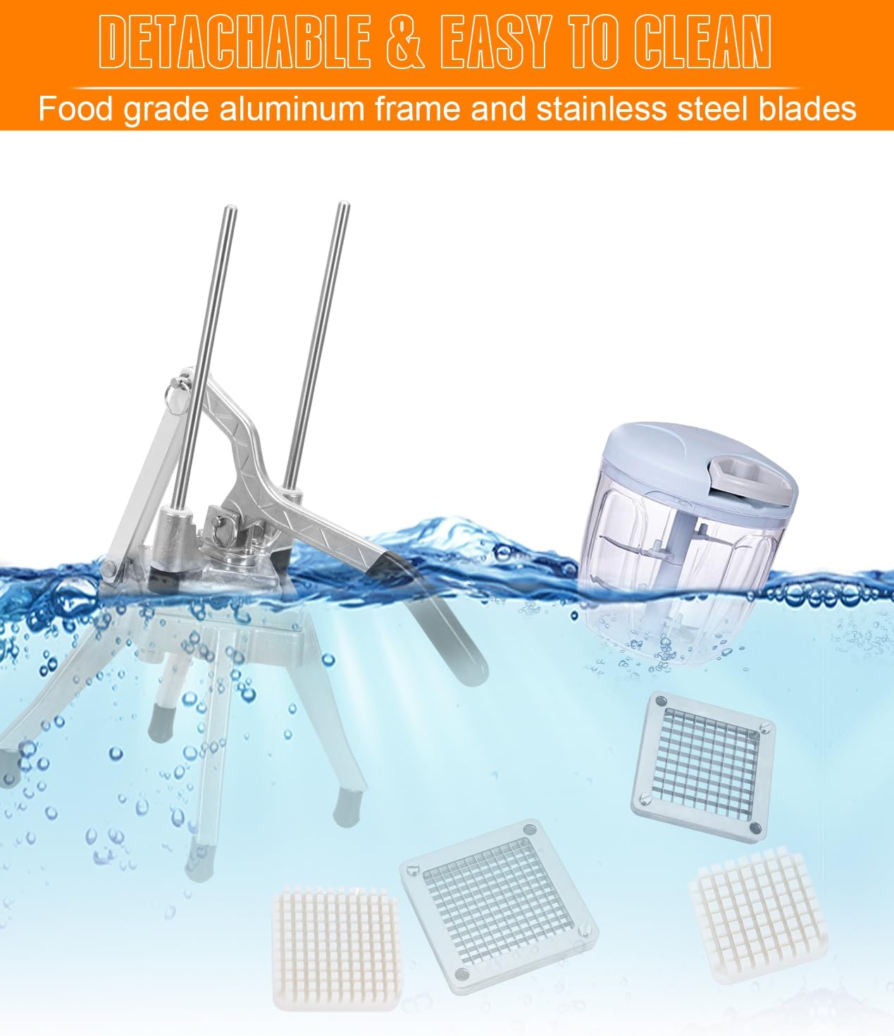 Commercial Vegetable Fruit Chopper 1/4″&3/8″ Blade Heavy Duty Professional Food Dicer Kattex French Fry Cutter Onion Slicer Stainless Steel For Tomato Peppers Potato Mushroom, Silver