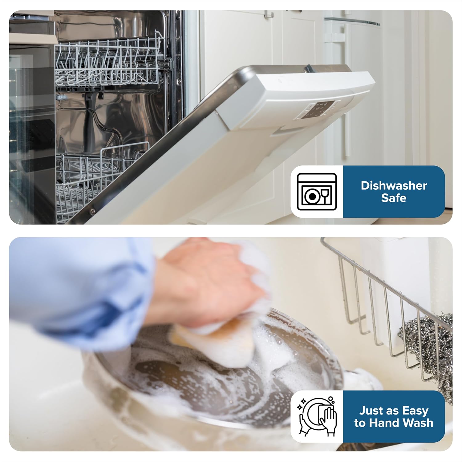 - DURABLE DESIGN FOR EFFICIENT COOKING: Our roasters feature a durable 3-ply construction consisting of a 304 non-reactive stainless steel interior, aluminum core, and stainless steel exterior which delivers even heat distribution along the bottom and throughout the sides of the pan; our broiling pan is oven friendly and compatible with gas, electric, grill, and induction, and heats up to 600 degrees F (315 degrees C); dishwasher safe, hand washing is recommended