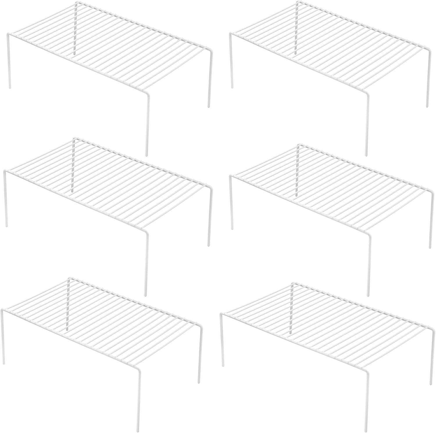 - This set of 6 cabinet shelf will double your space! Perfect for maximizing storage and organizing in kitchen cupboards, pantries, bathroom cabinets, closets, countertops, under a sink, or anywhere you need extra room.