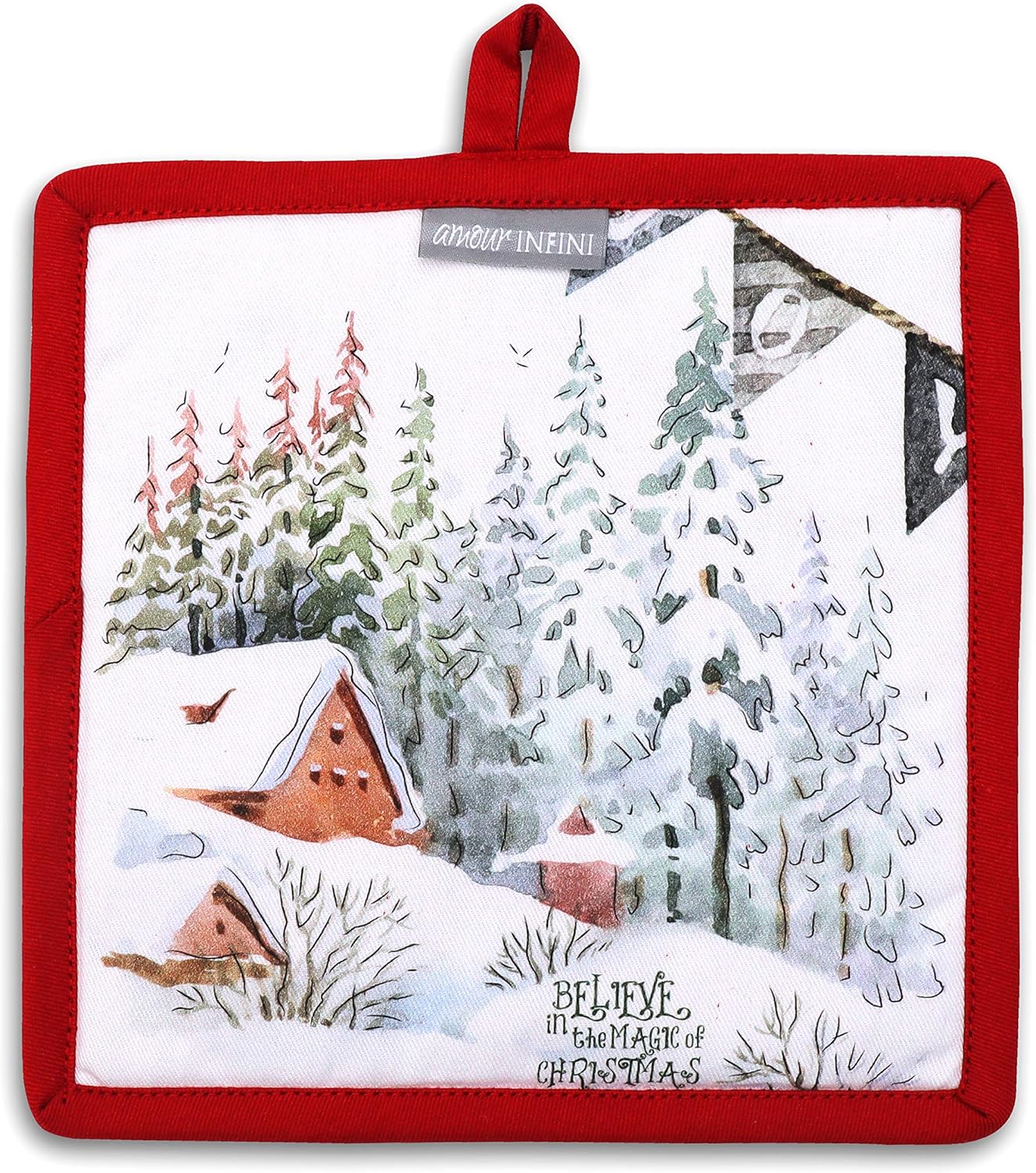AMOUR INFINI Pot Holders Heat Resistant Cotton Set of 2 Nonslip 8"x8" Inch Hot Pads for Kitchen, BBQ, Baking & Cooking with Hanging Loops (Christmas Winter)