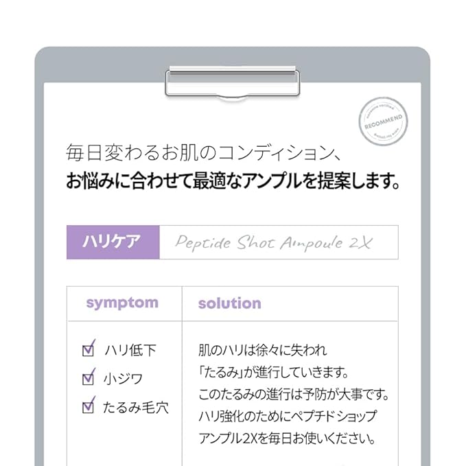 • 20 TIMES MORE CONCENTRATED PEPTIDES: Coreana Peptide Shot Serum is enriched with peptide threads that melt between the cracks of the skin. This 2x face serum helps restore the skin's elasticity by minimizing the appearance of wrinkles, fine lines, and aging spots. It contains 20 times more peptides than original ample:n peptide serum.