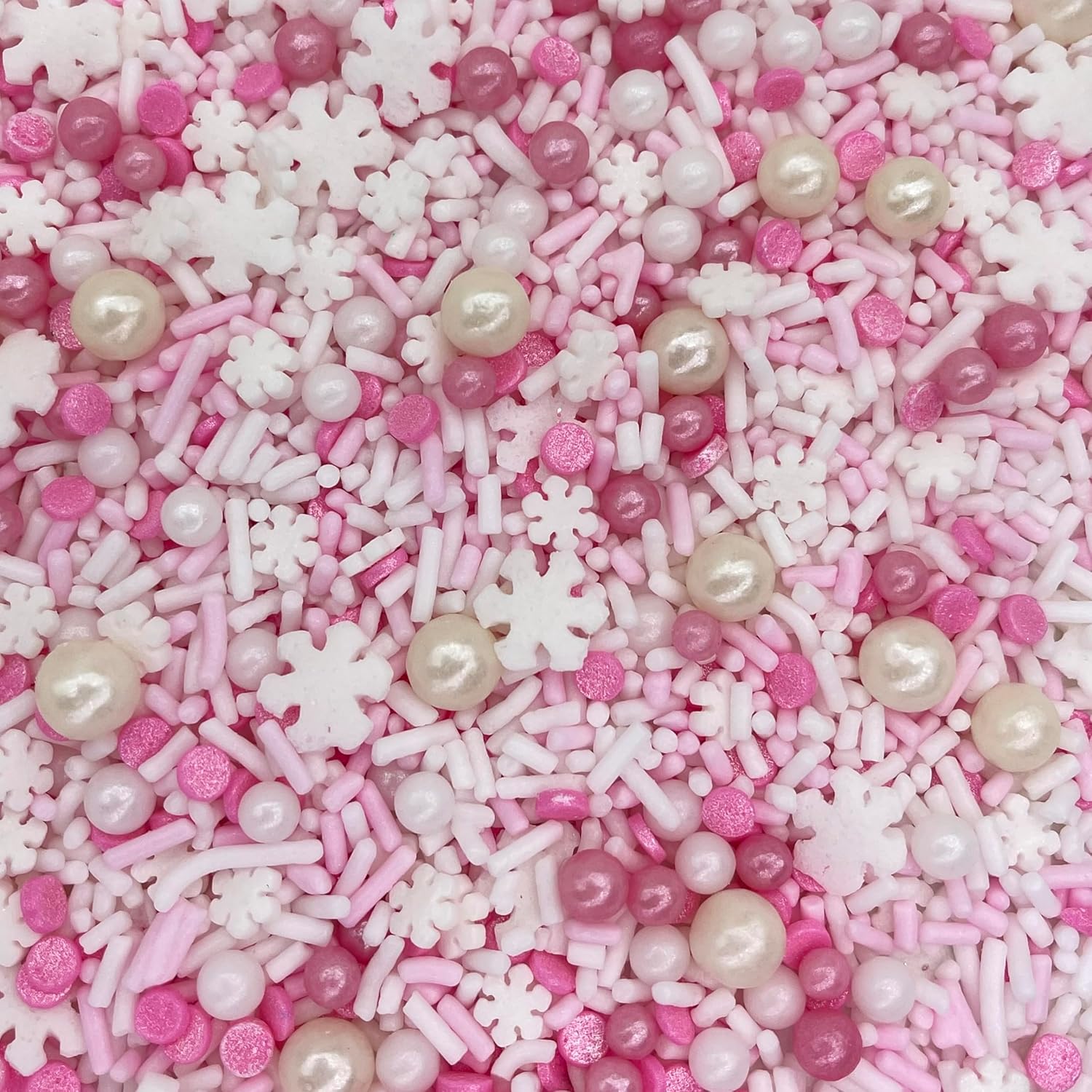 - ❄️4 ounces of bright, beautiful, and festive pastel pink snowflake sprinkles