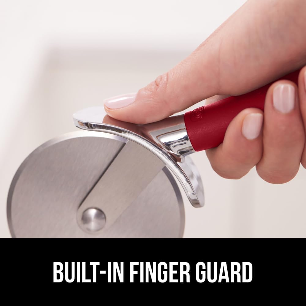 GORILLA GRIP BPA-Free Large Pizza Cutter Wheel, 9 Inch, Sharp Stainless Steel Blade, Slip Resistant Handle with Thumb Guard Protection, Slice Thick or Thin Pizzas, Pie, Pastries in Seconds, Red