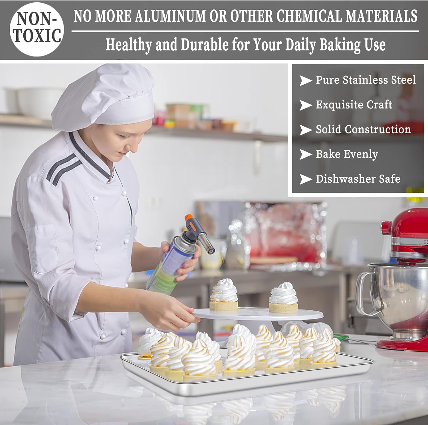 - π₯ [ENJOY HEALTHY BAKING] Deedro baking sheets and baking racks are constructed with pure stainless steel without any toxic substance or chemical coating, PTFE, PFOA, BPA and rust free. You needn't worry about coating flaking off or noxious material leaching into your food, great substitution of aluminum pan, healthy and safe for daily use.