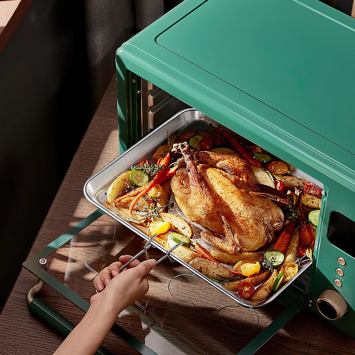 - π¦ [VERSATILE BAKEWARE KIT] The oven pans and baking racks are great for using separately or together. Perfect for baking cookies, breads, bacon, steaks, vegetables, ribs, chicken wings, drumsticks, brownies, pizza and more. The wire racks fit perfectly inside the pan to avoid foods falling through, weld firmly with dense parallel lines allow fast and even air circulation for baking or cooling.
