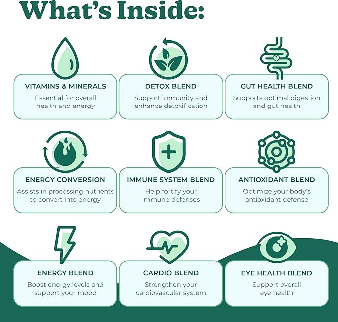 • Support for Gut, Energy & Detox: Formulated to promote healthy digestion, boost energy, and natural detox support, this healthy greens superfood powder is your go-to green juice powder for feeling your best, inside and out.