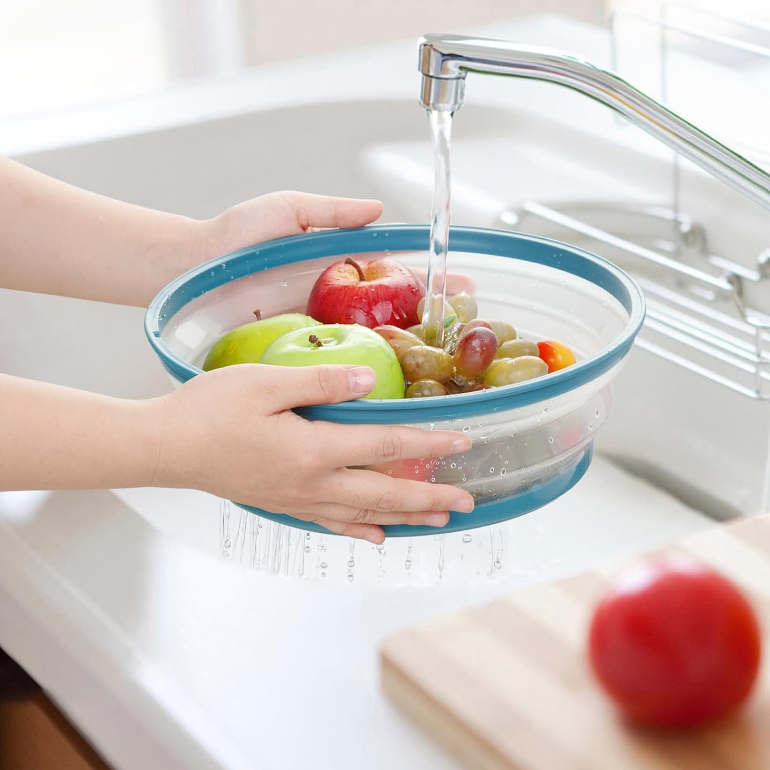 2 in 1,WENWELL Microwave Splatter Cover for Food & Mat, Vented Collapsible Kitchen dish bowl Plate lid Can be Hung, Easy to Shake Hands,Drainer Basket,BPA-Free Silicone & Plastic
